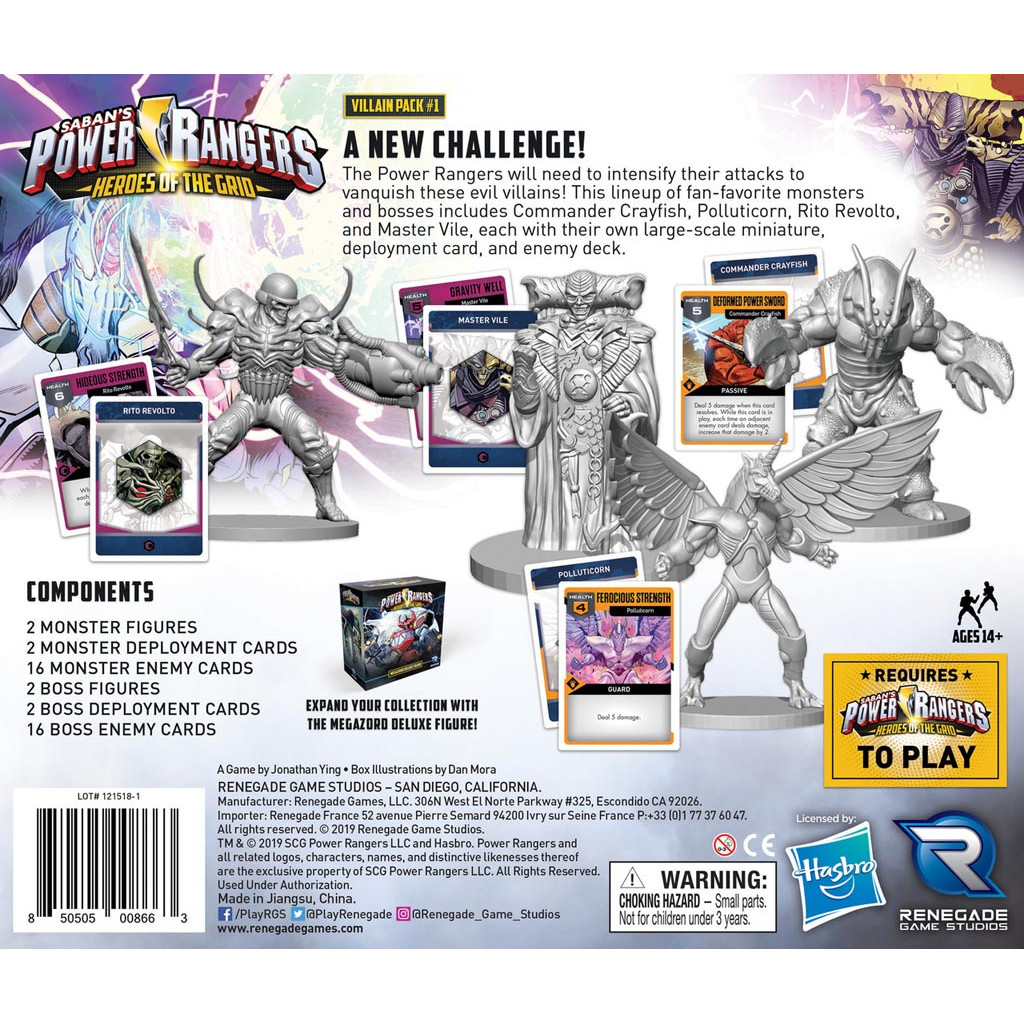 Préparez-vous à un combat encore plus intense avec le Pack de Méchants n°1 pour Power Rangers: Heroes of the Grid. Ce pack ajoute une redoutable sélection de monstres et de boss emblématiques : Commandant Crayfish, Polluticorn, Rito Revolto et Maître Vile. Chaque méchant possède sa figurine grand format, sa carte de déploiement et son propre deck d’ennemis, offrant de nouveaux défis stratégiques aux Rangers. Rassemblez votre équipe, planifiez vos attaques et sauvez le monde !