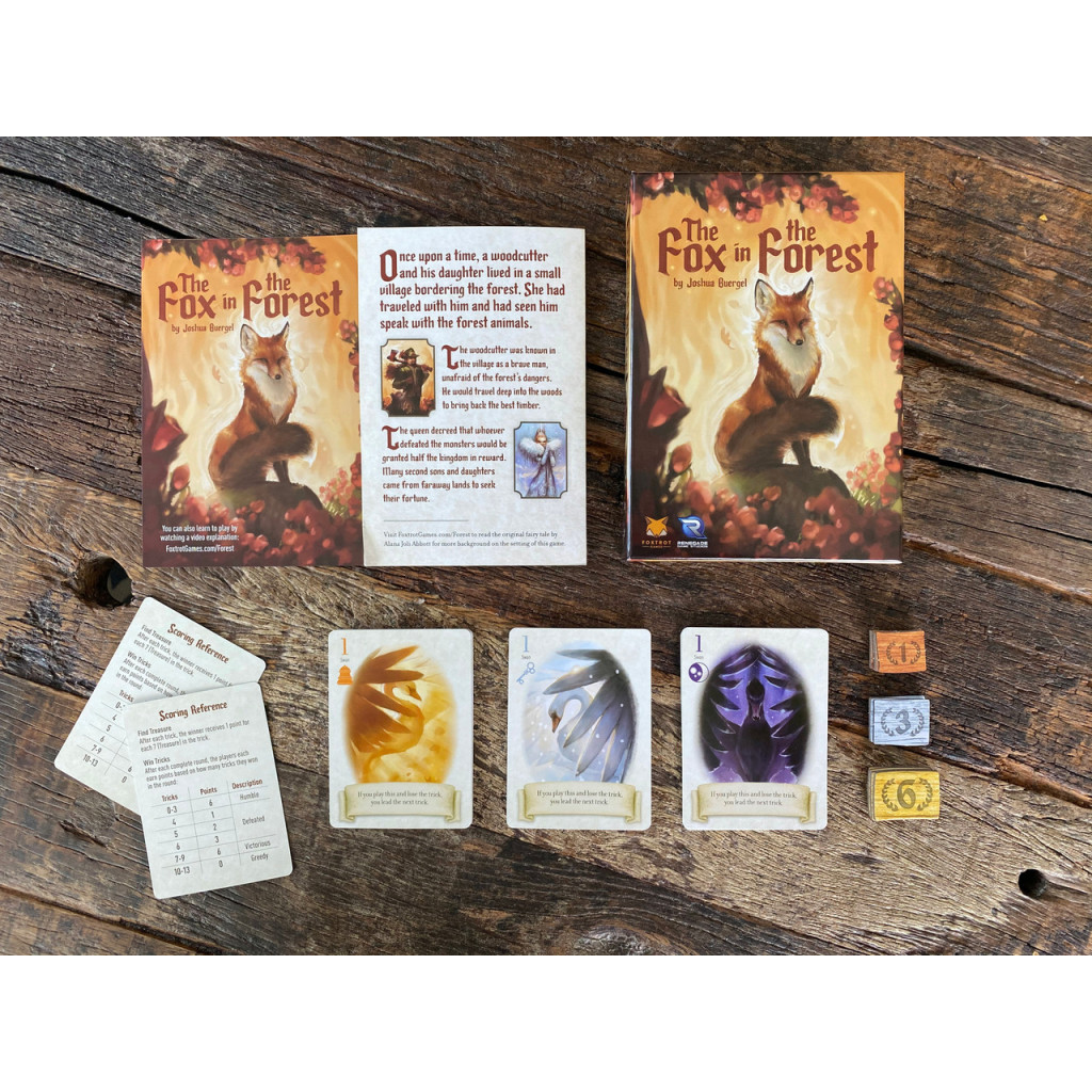Embarquez pour un voyage magique avec « The Fox in the Forest », un jeu de levées captivant créé par Renegade Game Studios. Plongez dans un monde féérique où un bûcheron et sa fille communiquent avec les animaux de la forêt. Conçu pour 2 joueurs, ce jeu introduit des capacités spéciales grâce à des personnages enchanteurs issus de contes de fées, vous permettant de manipuler la couleur d'atout et de prendre le contrôle du jeu même après avoir perdu une levée.