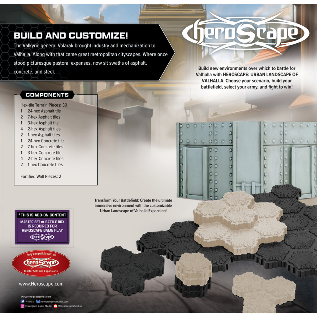 Transformez vos champs de bataille en zones de guerre urbaines avec cette extension entièrement compatible avec toutes les Boîtes de Combat, Sets de Base et Extensions Heroscape.