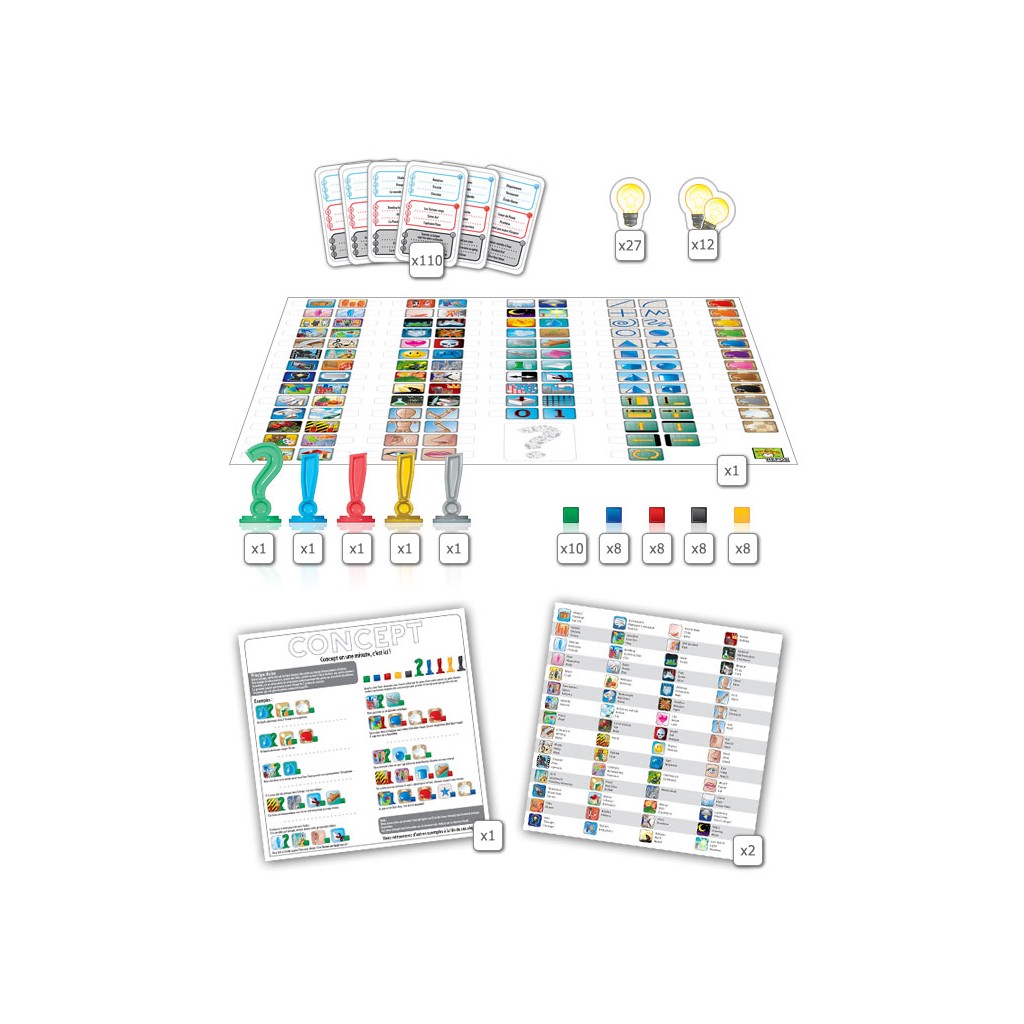 Le jeu Concept vous propose un nouveau challenge. Ne mimez pas, ne parlez ! Avec Concept vous devrez vous exprimer uniquement à l'aide de symboles ! L'idée est simple : faites deviner un concept en choisissant d'accumuler des pictogrammes. Associez par exemple la couleur jaune et noir et le symbole animal pour faire deviner une guêpe. Cela peut sembler facile. Oui, mais attention, il existe différents niveaux de difficultés. Pour les mots ou expressions plus complexes, vous pourrez donner des indices complémentaires à l'aide de sous-concepts. Vous verrez, plus le jeu se corse, plus il devient hilarant. Choisissez les bons symboles et soyez le premier à faire deviner le concept!