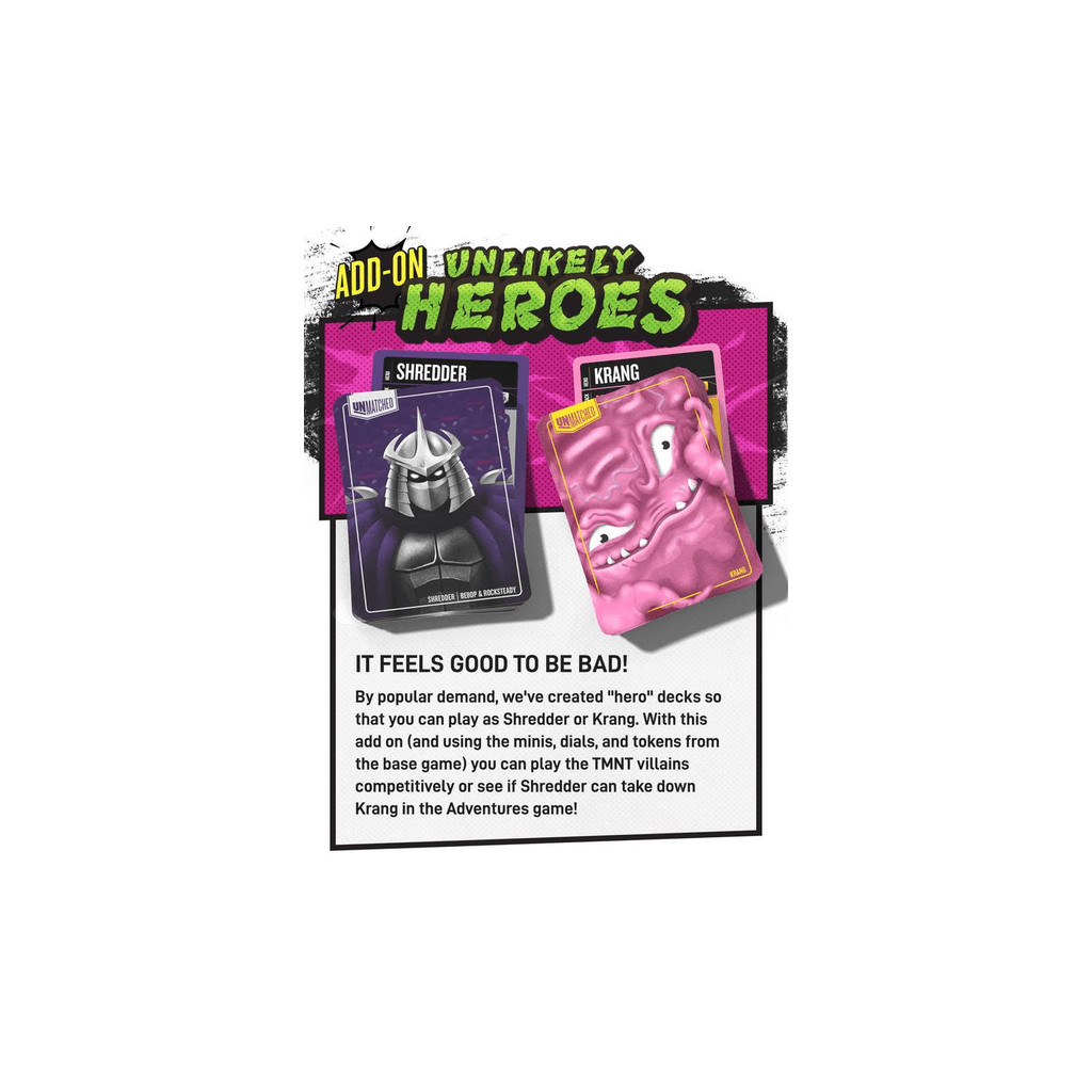 Utilisez les vagues de soldats du Foot Clan de Shredder (et ses fidèles acolytes, Bebop et Rocksteady) pour contrôler le champ de bataille. L'insondable Krang utilise le Dé de Destruction Ultime pour des résultats imprévisibles — quelque chose que seul un QI de 968 pourrait comprendre. Jouez ces vilains des TMNT en mode compétitif en tant que héros ou voyez si Shredder peut venir à bout de Krang dans le jeu Aventures.
