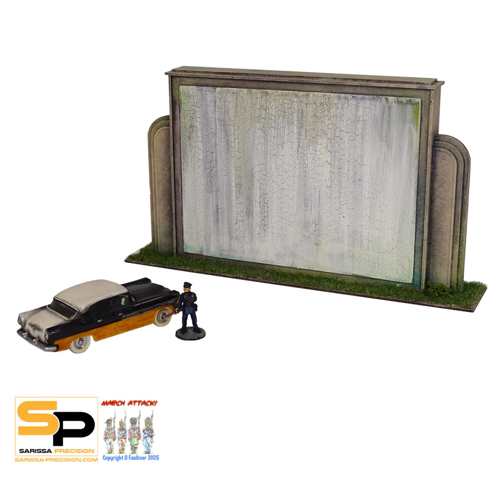 Recréez l'ambiance dramatique d'un cinéma en plein air avec l'écran d'un cinéma Drive-In. Imposant et plein de caractère, il constitue un excellent obstacle visuel ou un bâtiment objectif dans votre décor de table rétro américain. Parfait pour les jeux de table post-apocalyptiques, modernes ou sur le thème de la guerre froide.