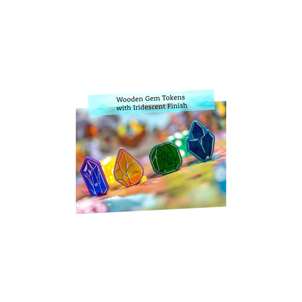 Gems of Iridescia - Iridescent Edition est un jeu de société de placement d'ouvriers dans lequel les joueurs tentent leur chance en s'affrontant pour extraire des gemmes, restaurer des reliques anciennes et accéder au trône d'un monde riche en gemmes. Des objectifs secrets et une variété de façons de marquer des points créent différents chemins vers la victoire, faisant de chaque expédition une expérience unique.