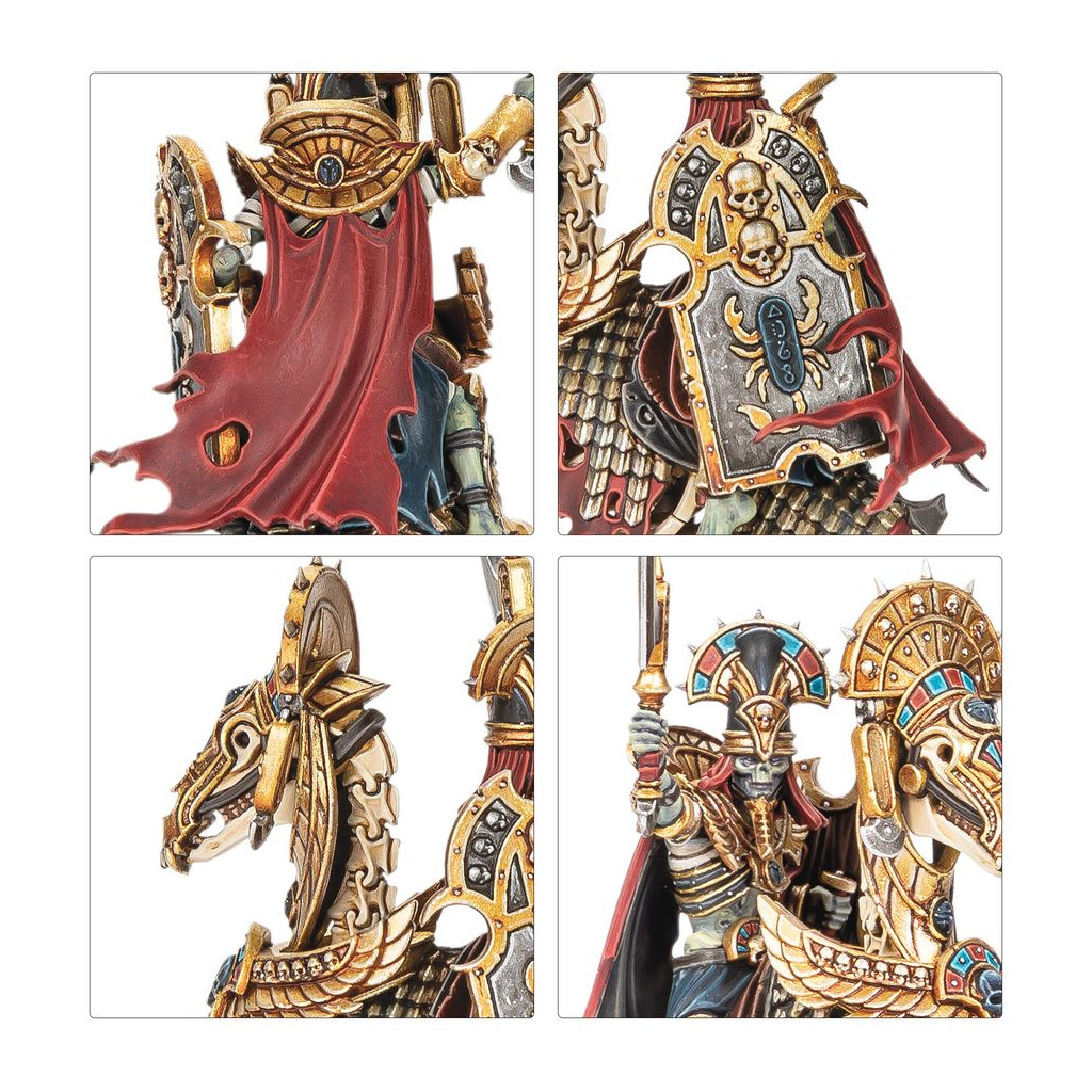 Ce kit en plastique permet d'assembler deux Hérauts Royaux – un à pied et un monté sur destrier squelettique caparaçonné – de puissants champions pour vos armées des Rois des Tombes dans les parties de Warhammer: The Old World. Les deux figurines peuvent être utilisées pour représenter un Héraut Royal, un Prince des Tombes ou un Roi des Tombes. Ces figurines macabres sont idéales pour renforcer votre armée et ce sont de féroces combattants.