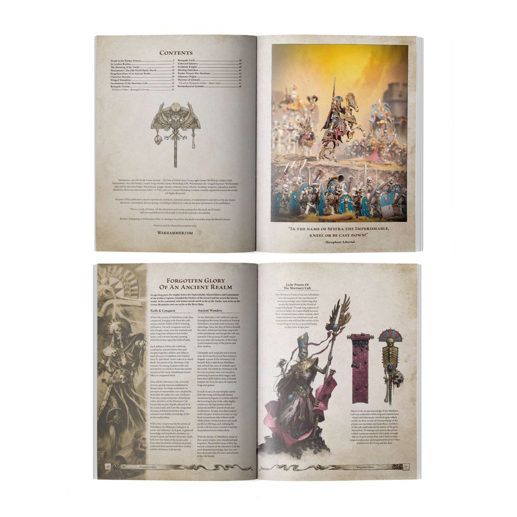 - Règles étendues pour les Tomb Kings of Khemri : des directives pour utiliser de nouvelles montures et incantations dans vos armées.