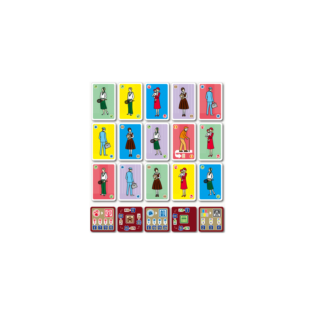À chaque tour, vous pouvez soit prendre des passagers, soit les déposer. Pour prendre des passagers, choisissez toutes les cartes de passagers d’une même couleur parmi celles qui attendent à l’arrêt de bus, puis placez-les dans votre bus — c’est-à-dire dans la zone devant vous, qui peut contenir au maximum dix cartes. Les seniors ne vont pas loin, vous marquez donc des points immédiatement pour eux au lieu de les placer dans le bus.