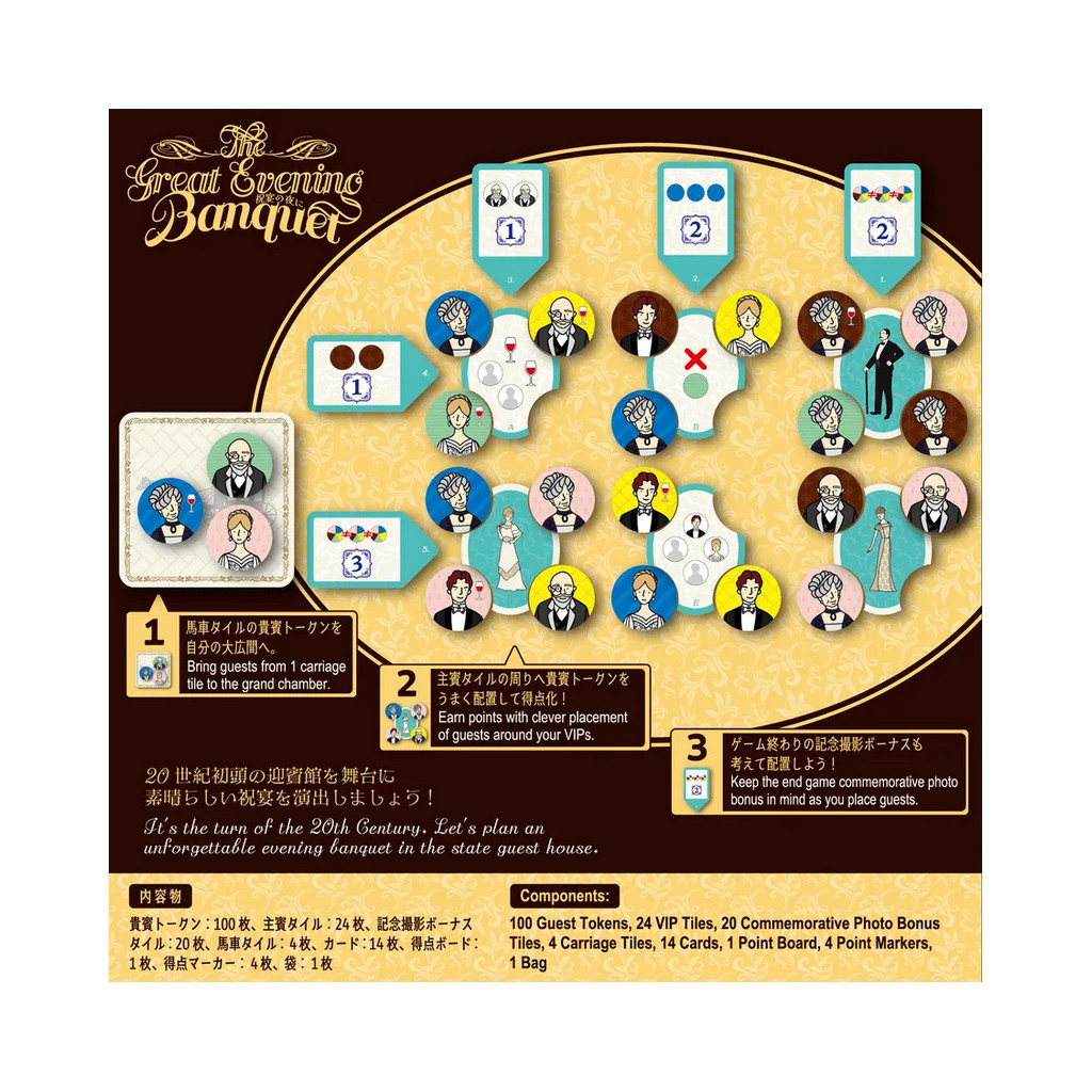 The Great Evening Banquet propose des règles avancées dans lesquelles les tables sont rapprochées et où un invité peut s'asseoir à deux tables à la fois. Des règles pour une partie en solo sont également incluses, avec un nombre de calèches qui diminue et augmente à chaque tour.