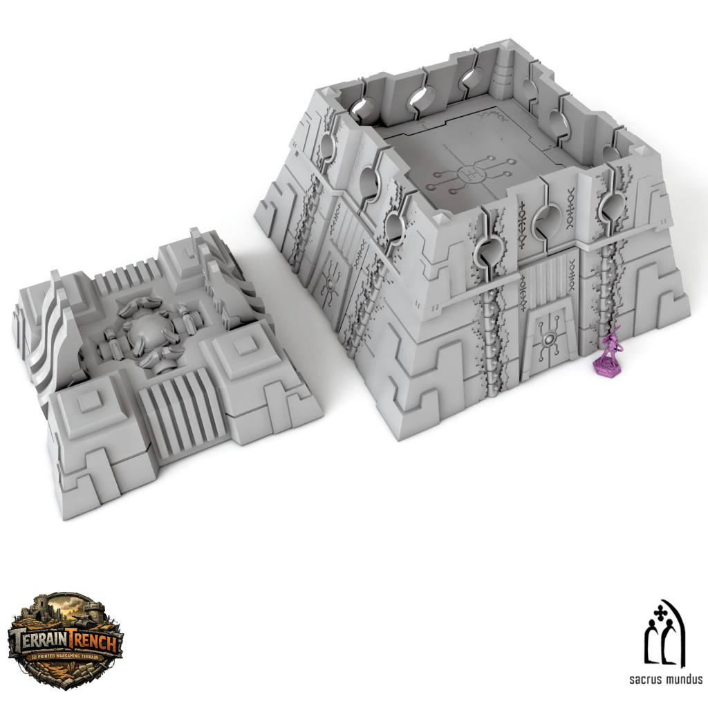 Une grande pyramide extraterrestre Xenos est incluse. Le sommet de la pyramide peut être retiré pour accéder à un étage surélevé où les unités peuvent se mettre à couvert. Cet article est composé de 10 pièces. Il peut être nécessaire de les coller pour les assembler de manière permanente.
