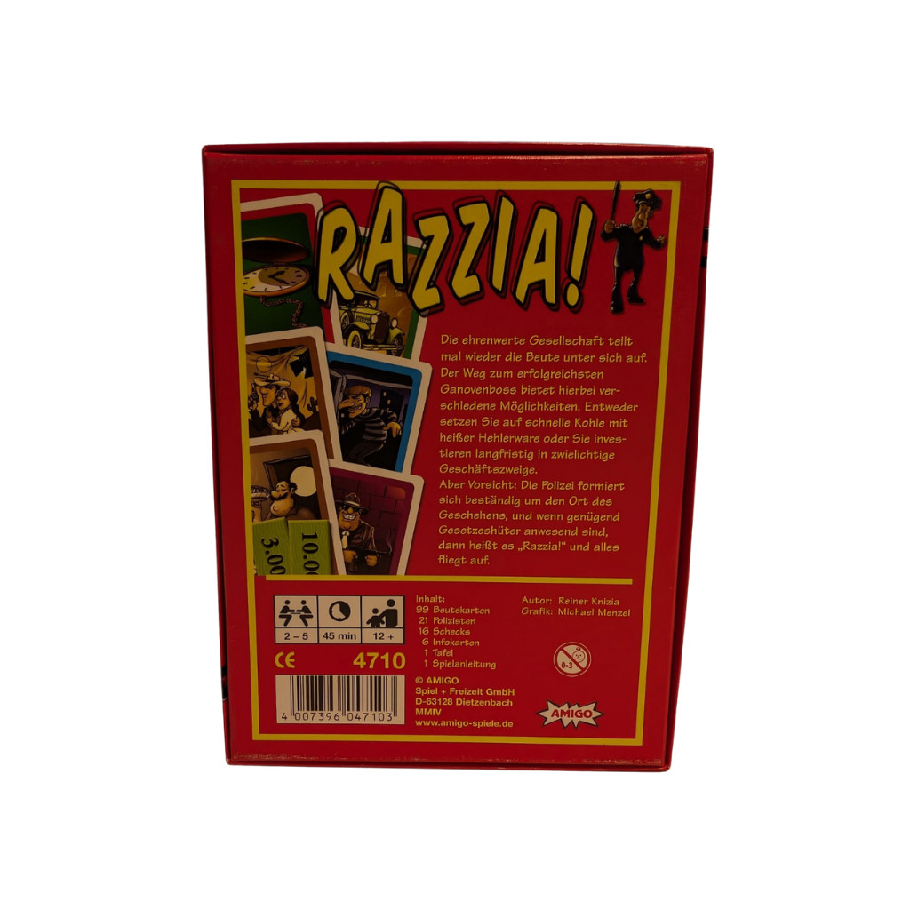 Razzia ! est une version sous forme de jeu de carte (donc moins luxueuse et moins chère) de Râ (sorti chez Alea), avec de légères modifications dans les règles et dans la répartition des tuiles (qui sont donc devenues des cartes).