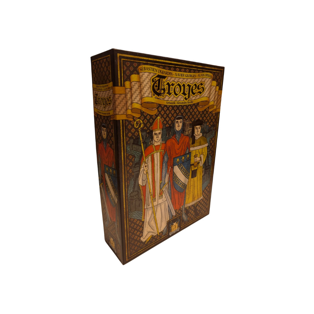 Troyes est un jeu de stratégie dans lequel vous incarnez une riche famille champenoise usant de son influence pour recruter et diriger des habitants dans trois domaines d’activité: le militaire (associé à la couleur rouge dans tous les aspects du jeu), le religieux (en blanc) et le civil (en jaune).