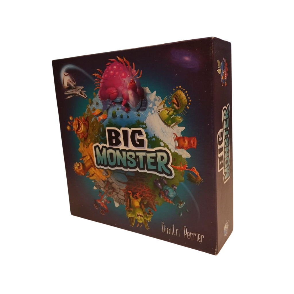 Big Monster vous projette dans la découverte d’une planète inconnue haute en couleur, sur laquelle vous allez découvrir des monstres étranges, des cristaux rares mais aussi remplir des missions pour lesquelles vous êtes en compétition avec les autres explorateurs. Dans le mode équipe vous devez aider votre partenaire tout en essayant de « pourrir » vos adversaires, car l’explorateur le moins performant de chaque équipe est celui qui déterminera le score final. Chaque tour votre découverte de la planète sera symbolisée par la tuile que vous choisissez et que vous placez devant vous. Une mécanique de Draft originale, où vous pouvez choisir à qui vous transmettez votre lot de tuiles restant permet de créer une interaction forte mais offre aussi de vrais choix, à chaque action. Les tours sont naturellement rythmé par la mécanique de draft affecté. La variété des tuiles et le système de draft offrent des dilemmes permanents. Autour d’une mécanique très simple (je choisis et je pose une tuiles dans mon aire de jeu) Big Monster offre un plaisir immédiat associé à une véritable courbe d’apprentissage. Un premier niveau de plaisir apparaît dans la découverte d’un monde haut en couleur, puis dans les subtilités dans les choix de tuiles et enfin dans les affectations de tuiles aux autres joueurs. Fun, tactique, rapide à expliquer et à jouer, Big Monster s’adresse aussi bien aux familles qu’aux joueurs experts. :)