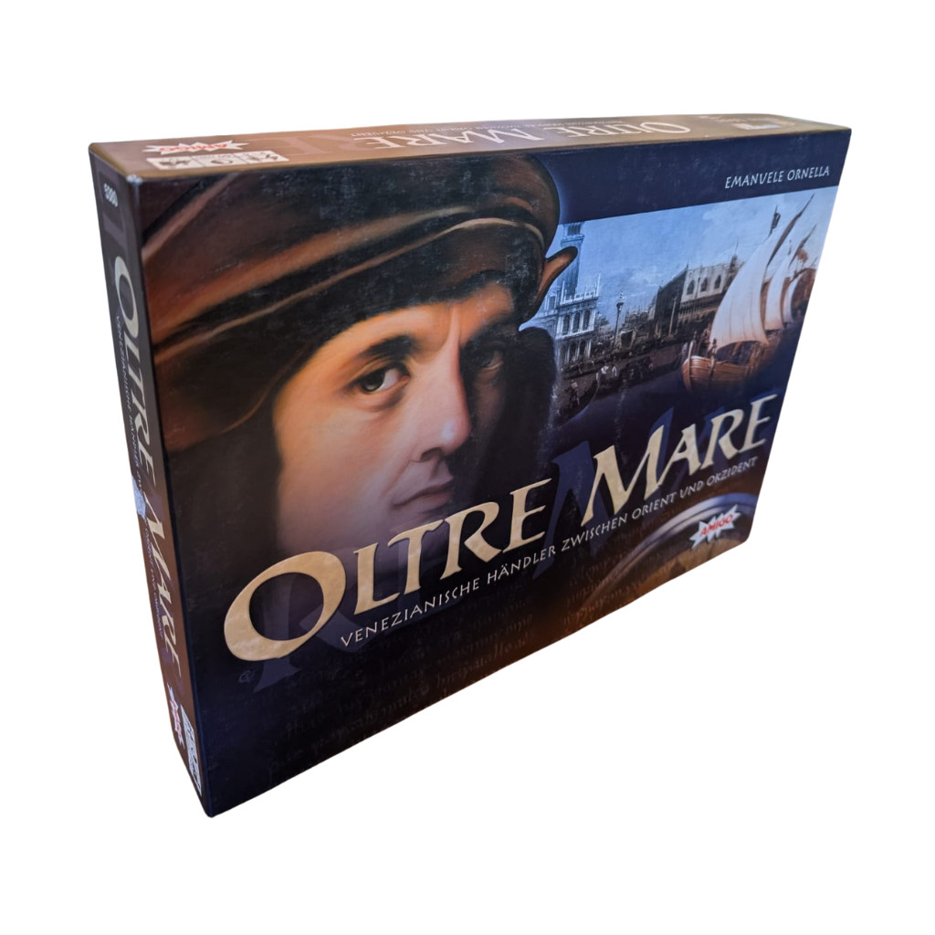 Oltre Mare vous plonge dans le commerce vénitien à travers la Méditerranée : chaque joueur pilote un navire marchand, parcourt les ports, achète ou échange des marchandises, remplit sa cale puis tente de maximiser ses profits en revendant les cargaisons. Le jeu mêle négociation, gestion de main, prise de risque et opportunisme — chaque tour, on négocie, on achète, on charge, on navigue.