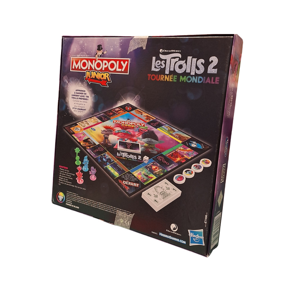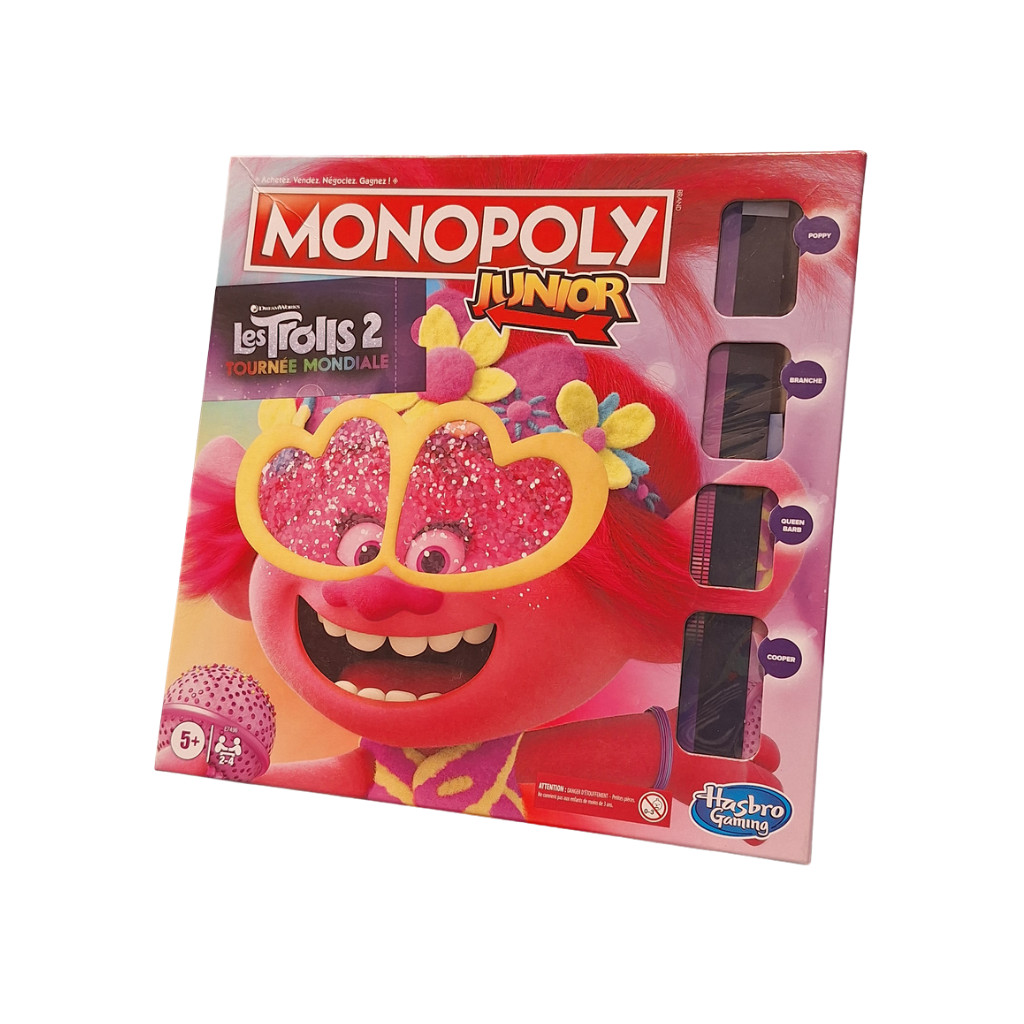 Monopoly Junior Les Trolls 2, édité par Hasbro, est une version enfant du Monopoly inspirée du film d’animation Trolls World Tour.