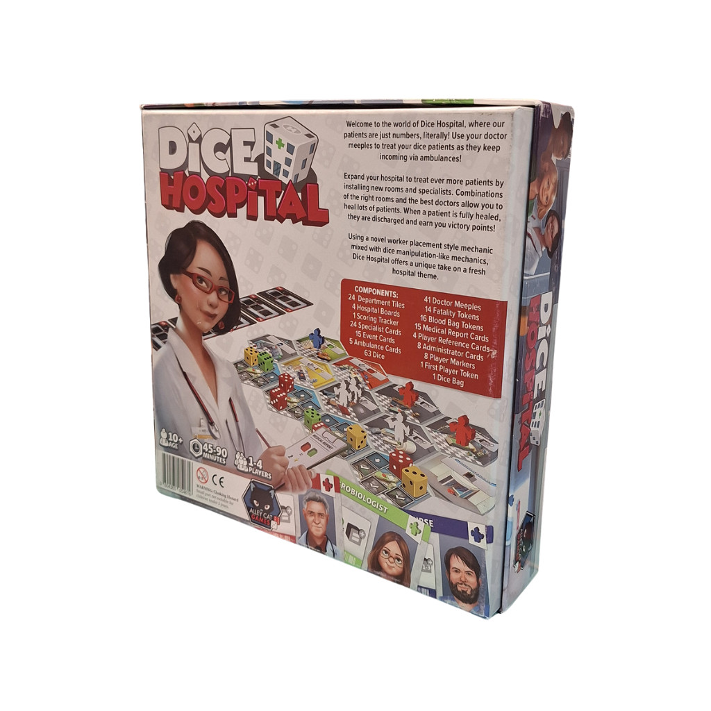 Dice Hospital, édité par Alley Cat Games, est un jeu de gestion stratégique dans lequel les joueurs dirigent un hôpital et doivent soigner leurs patients plus efficacement que leurs concurrents.