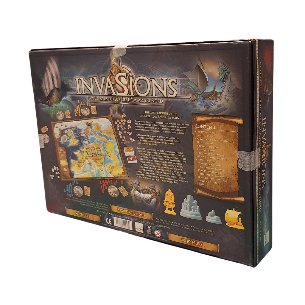 Invasions est un jeu de plateau à thème viking dans lequel les joueurs incarnent des chefs de clans cherchant à accumuler richesses et prestige à travers des raids, du commerce et des explorations. Le but est de devenir le plus puissant en exploitant les ressources, en accomplissant des sagas et en développant son influence sur différentes régions.