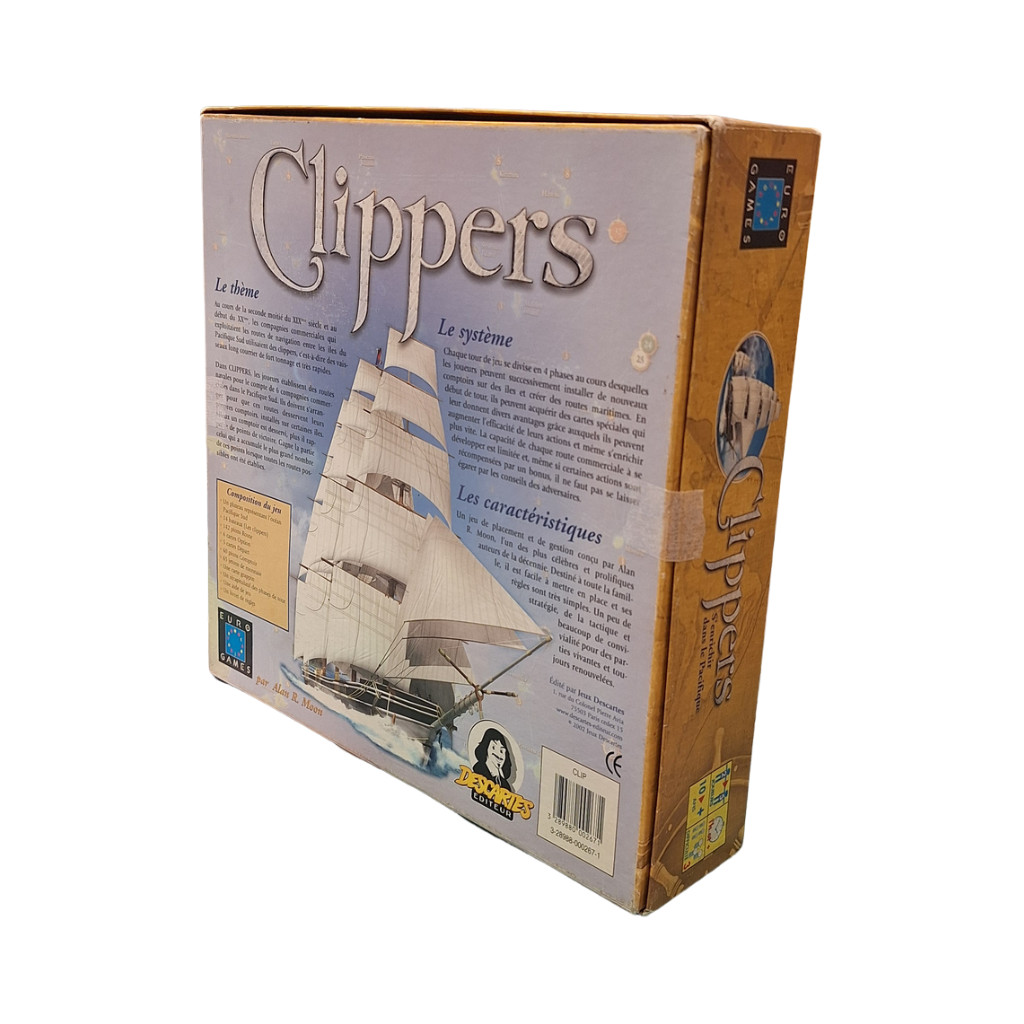 Clippers est un jeu de stratégie et de commerce maritime se déroulant au XIXe siècle, dans lequel les joueurs dirigent des compagnies de transport maritime. L’objectif est de développer les routes commerciales les plus rentables en reliant différents ports à travers le monde, notamment en transportant des marchandises comme le thé.