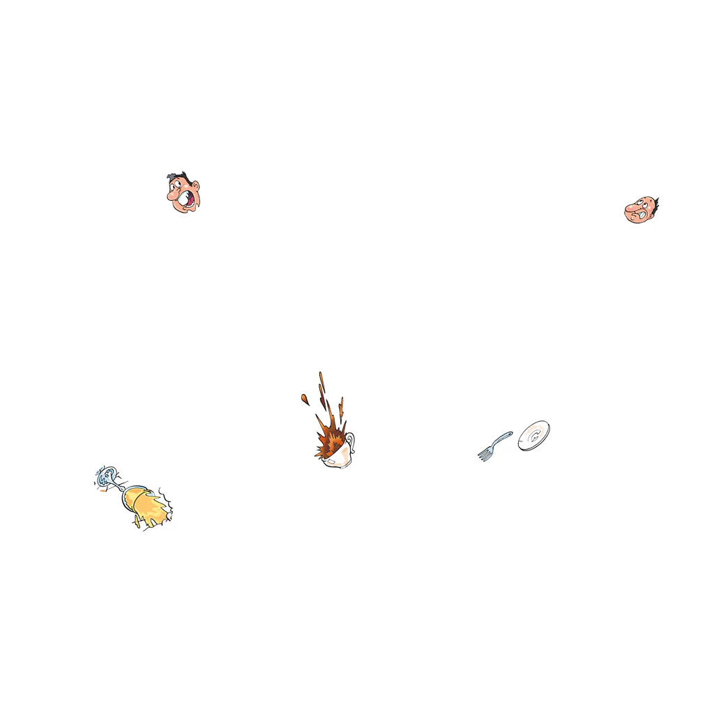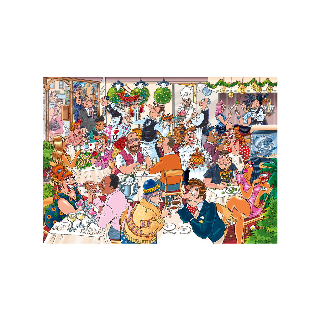 C’est la Saint-Valentin et le bistro est plein à craquer de couples amoureux. D’autres attendent patiemment devant la porte. On se murmure des mots doux, on s’offre des cadeaux et on se dévore des yeux. Il y a aussi ceux qui préfèrent consulter leur téléphone portable. Les commandes affluent de toutes parts. Mais attention ! Que se passe-t-il lorsque le serveur chargé d’un énorme plat de homard et de crabe est tout éclaboussé ?