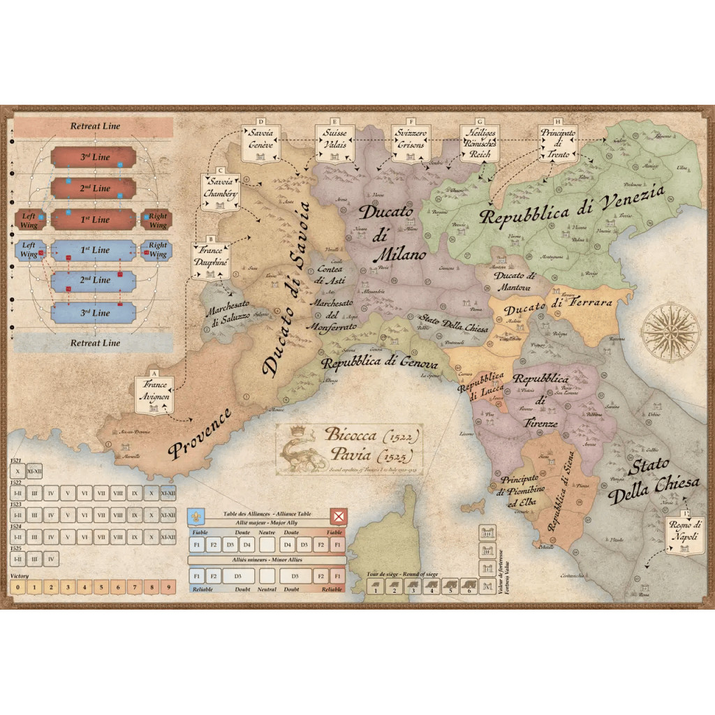 Pour célébrer le 500e anniversaire de la bataille de Pavie (24 février 1525), ce jeu couvre l’ensemble de la sixième guerre d’Italie, débutant en 1521 et menant à Pavie. La carte stratégique inclura une partie du sud de la France, envahie par les Impériaux menés par le transfuge Charles de Bourbon, ancien connétable de France, et notamment la ville stratégique de Marseille, assiégée pendant 40 jours.