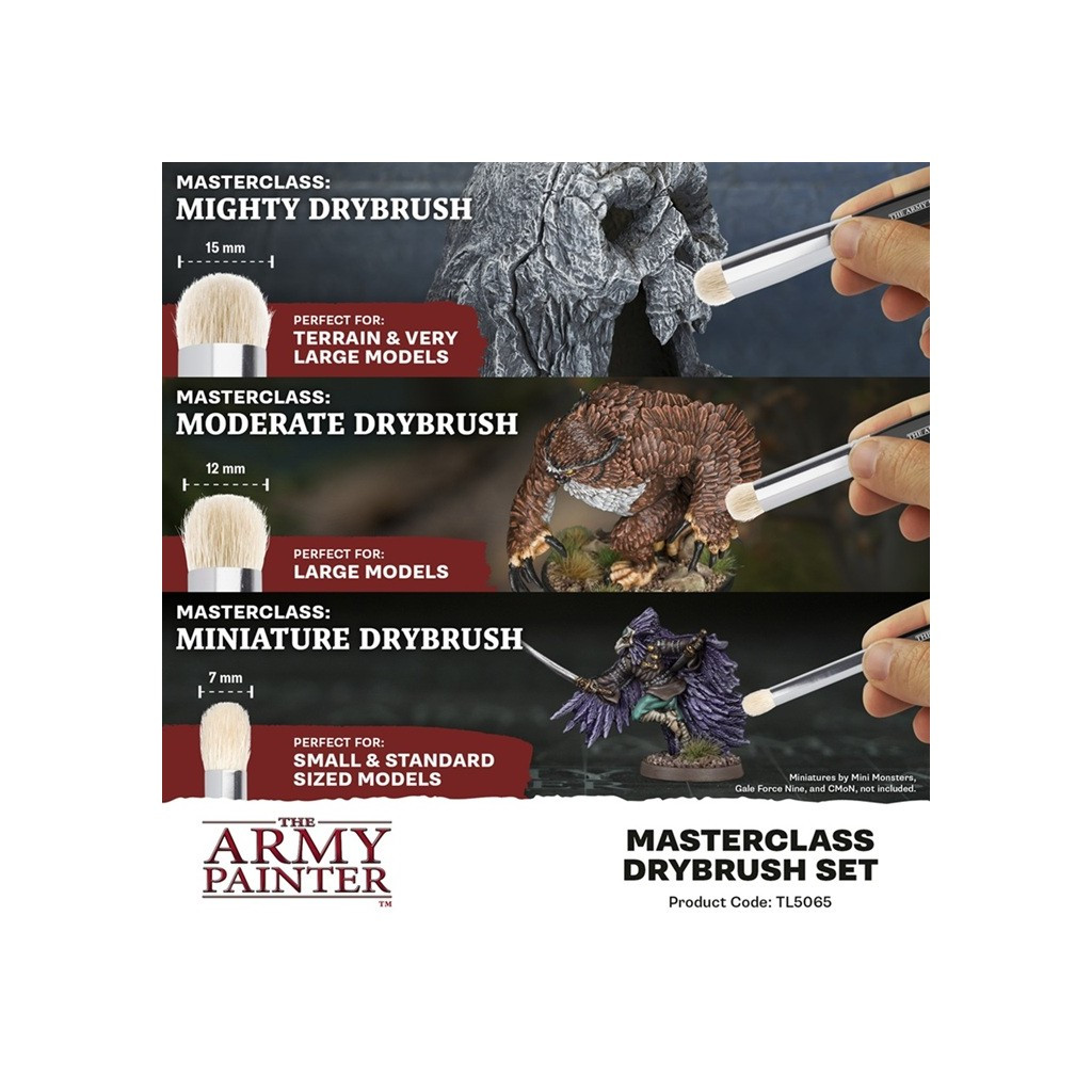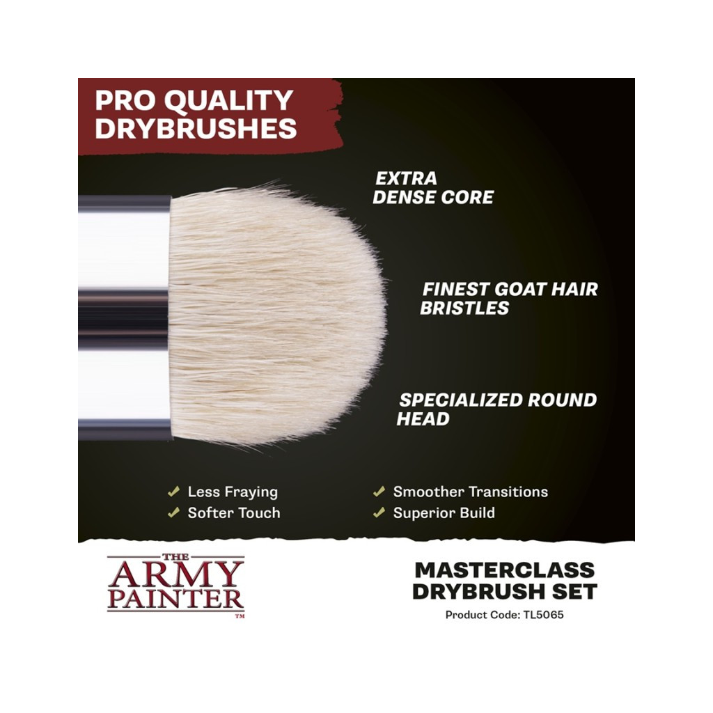 Les poils naturels de chèvre du produit Army Painter - Masterclass Drybrush Set offrent une application douce et contrôlée, idéale pour les techniques de mélange et de brossage à sec.
