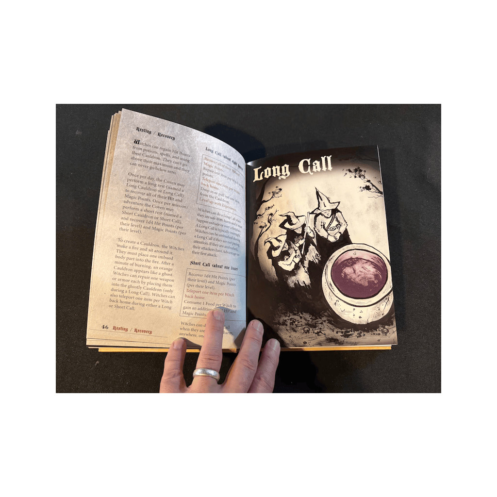 La nostalgie n’est pas l’objectif de Sickest Witch. De nombreux systèmes old school excellent déjà dans ce domaine. Bien que son système de jeu s’inspire fortement du passé, il ne cherche pas à le recréer.