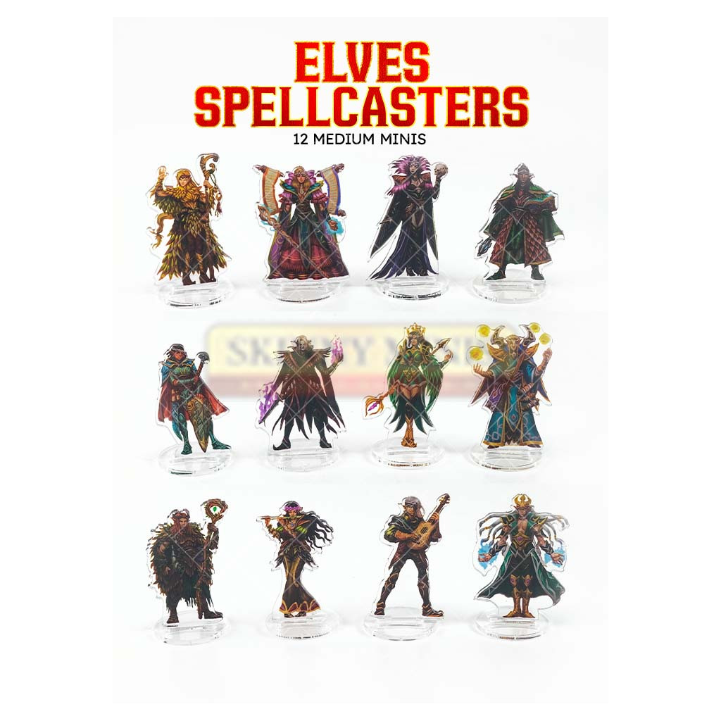 12 figurines de taille moyenne : Bardes, Clercs, Druides, Sorciers, Ensorceleurs et Magiciens, hommes et femmes.