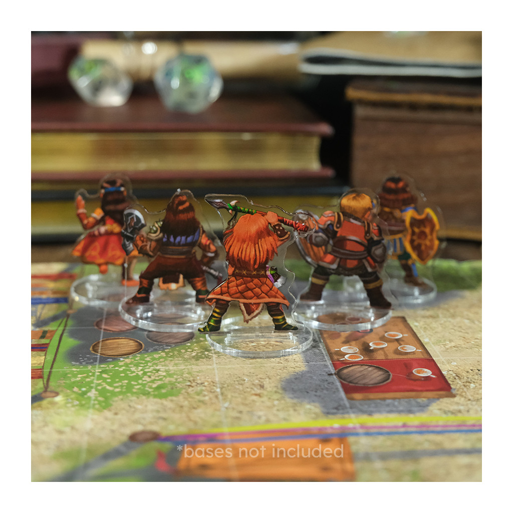 16 petites figurines : Barbares, Guerriers, Moines, Paladins, Rôdeurs et Voleurs, hommes et femmes. Tonneau de bière, Marmite, Baril de poudre, Chariot à roues.