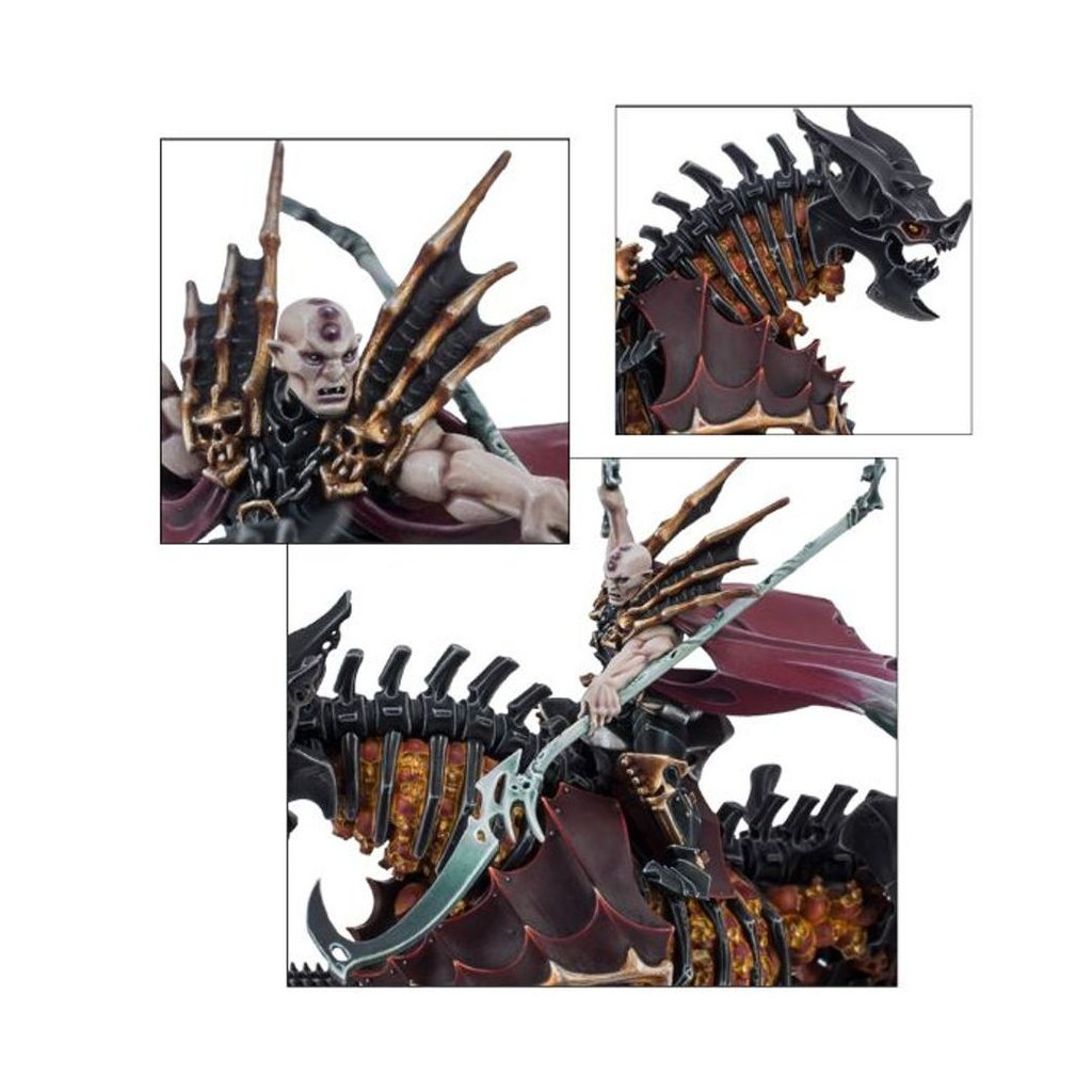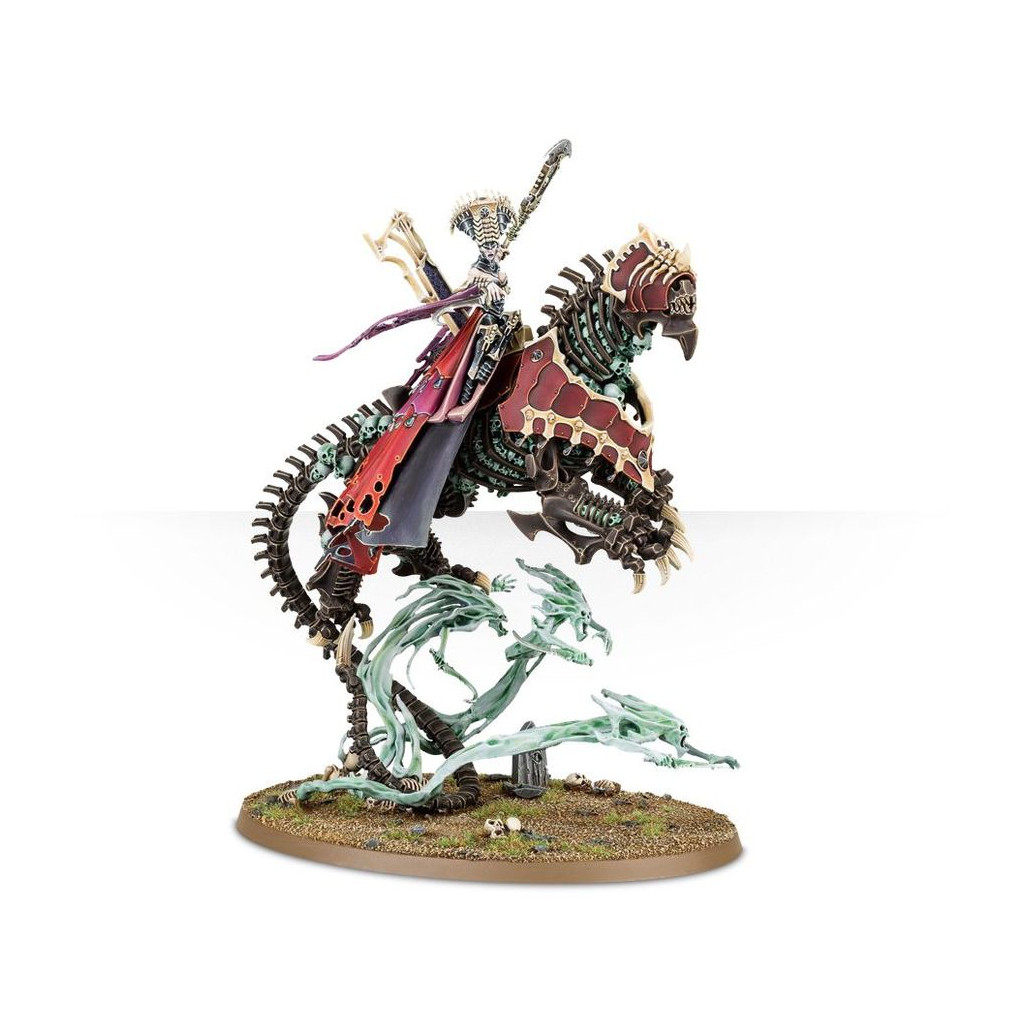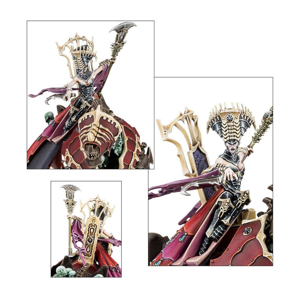 Ce kit en plastique permet d'assembler Neferata, la Mortarque du Sang, une meneuse rusée et sage pour vos armées de Seigneurs Ruinemânes dans les parties de Warhammer Age of Sigmar. Générale experte, elle est redoutable au combat, et grâce à la vitesse de sa monture, Nagadron, elle peut mettre ses sombres talents à profit partout sur le champ de bataille. Neferata est une puissante sorcière capable d'employer la magie de Shyish pour s'assurer que ses plans arrivent à leur terme.