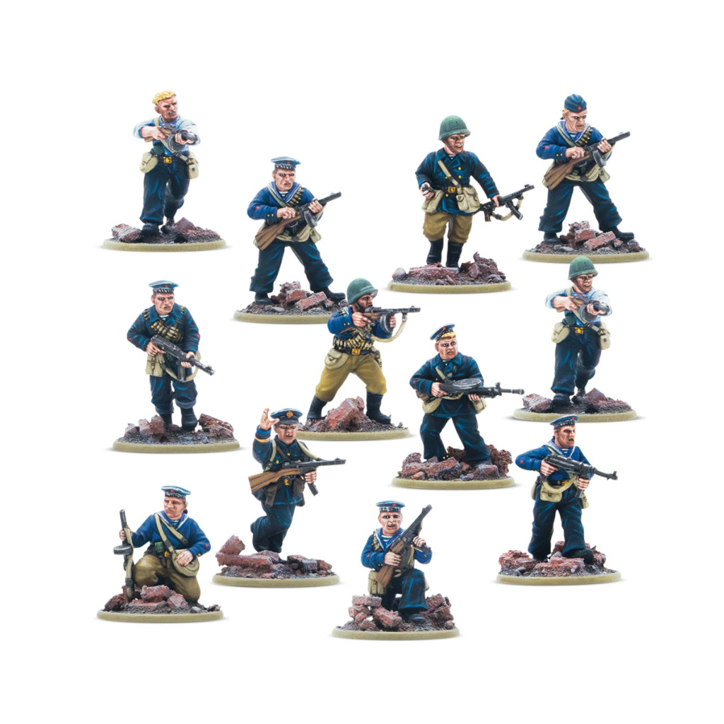 Plusieurs unités spécialisées d'infanterie navale ont été formées : quarante brigades et cinq régiments. Elles se sont forgé une réputation de ténacité et d'audace tant dans les combats défensifs que dans les opérations de débarquement côtier sur la mer Baltique et la mer Noire. Grâce à leur expérience militaire et à leur fort esprit de corps, elles comptaient parmi les meilleures troupes à la disposition des commandants soviétiques. Cela vaut également pour le jeu de plateau Bolt Action, où les unités de la brigade navale font partie des règles spéciales de l'armée Hammer & Sickle, apportant la règle toujours utile des Tough Fighters. Ces vétérans sont bien équipés d'une pléthore de mitraillettes, parfaites pour tirer des rafales meurtrières à courte portée.