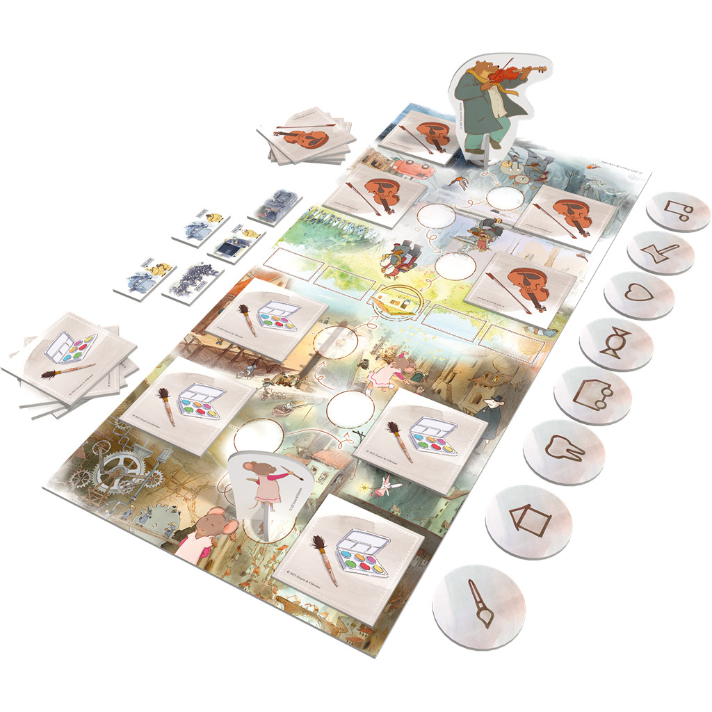 À chaque tour, piochez une tuile et reproduisez le symbole sur le dos d’un de vos partenaires de jeu. Si vos partenaires le devinent, alors Ernest & Célestine se rapprochent. Mais en cas d'erreur, la police pourrait bien empêcher les retrouvailles de nos deux amis...