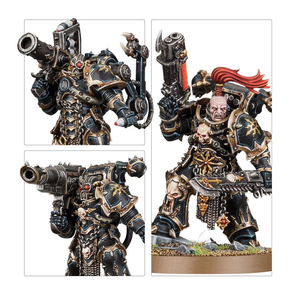 Les Space Marines du Chaos sont des guerriers génétiquement améliorés qui ne vivent que pour la conquête, le massacre et le pillage. Ces hérétiques partent au combat équipés de versions corrompues des armes et armures qu'ils employaient jadis, quand ils faisaient partie des troupes loyales de l'Imperium. Désormais, ils mènent une campagne éternelle de vengeance, de conquête et de violence apocalyptique.