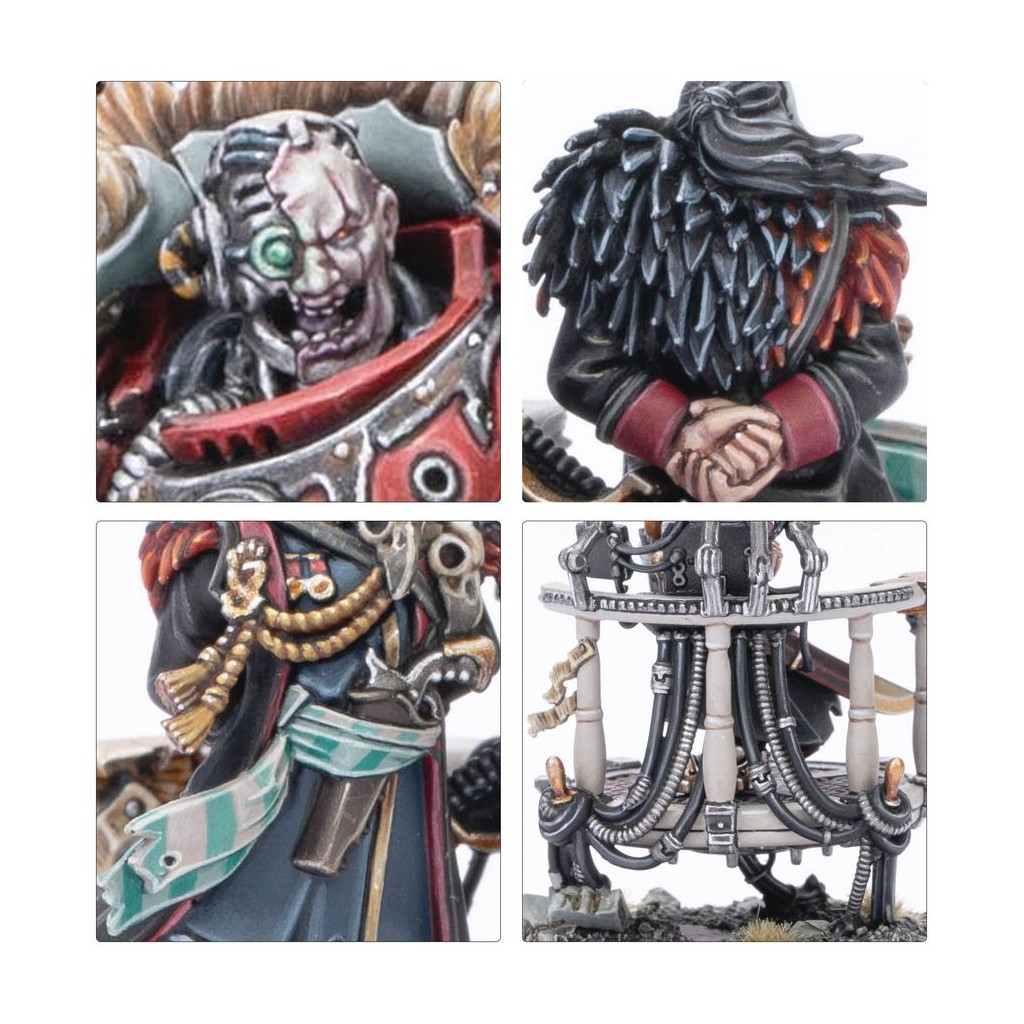 Ce kit en plastique permet d'assembler Huron Blackheart et ses lieutenants les plus fiables pour vos armées de Space Marines du Chaos dans les parties de Warhammer 40,000. Huron est resplendissant dans son armure modifiée, et il manie la légendaire Griffe du Tyran tout en brandissant une redoutable hache énergétique. Il est accompagné de l'Hamadrya. À ses côtés combattent ses guerriers les plus loyaux. Garreon le Maître des Cadavres est le Seigneur-apothicaire des Red Corsairs, et Katar Garrix est le terrifiant Bourreau. Garlon Souleater est le plus puissant sorcier du Tyran, tandis que la Capitaine Sargotta est la commandante de son vaisseau amiral. L'Exécutrice est une pisteuse obstinée qui combat avec l'aide de son Barghesi de compagnie, Razzia. Chacun apporte son lot d'aptitudes personnelles à votre force, ce qui vous permet de garder le contrôle sur le Maelström, tandis que les figurines pleines de caractère vous proposeront un superbe projet de peinture.