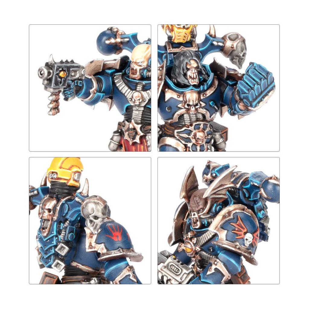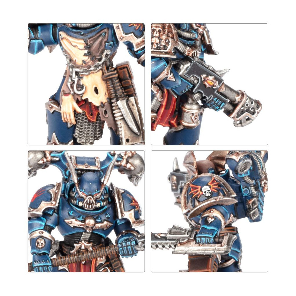 Le Champion Élu peut être armé d'une épée tronçonneuse, d'une hache énergétique ou d'une masse énergétique, et il dispose d'un choix de deux plaques pectorales, de deux tabards, de trois têtes et de trois sommets de paquetage dorsal. Le reste de l'escouade peut être équipé d'armes interchangeables, dont deux bolters, deux pistolets bolters, deux pistolets à plasma, deux armes combinées, deux épées tronçonneuses, des haches tronçonneuses, un gantelet énergétique et une paire de griffes Lightning. Ces guerriers disposent également de 4 paquetages dorsaux, 8 épaulières et 12 têtes, tous interchangeables.