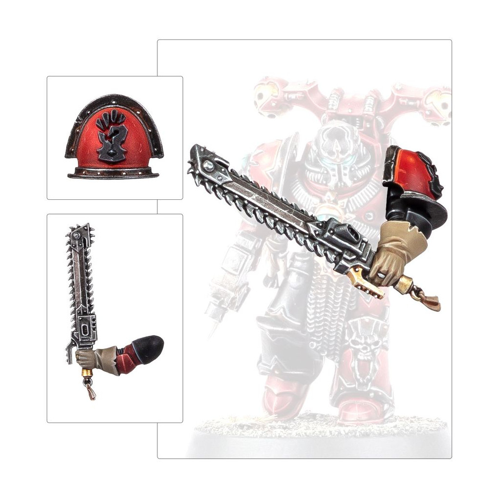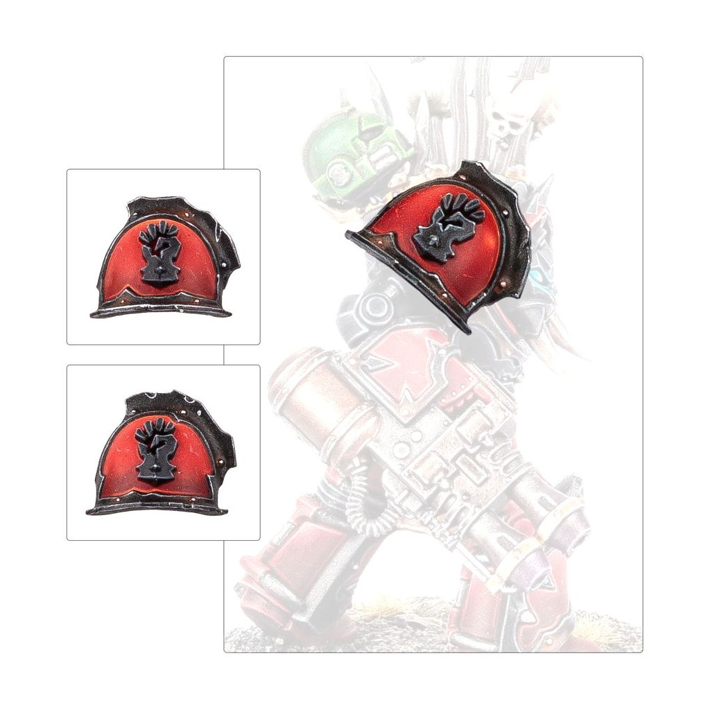 Ce kit d'amélioration est composé de 27 éléments en plastique conçus pour être assemblés avec d'autres kits en plastique des Space Marines du Chaos, dont l'Escouade Terminator du Chaos et les Légionnaires, tous deux disponibles séparément. Ces éléments sont fournis non peints et nécessitent assemblage – nous recommandons d'employer la Colle Plastique Citadel et la peinture Citadel Colour.