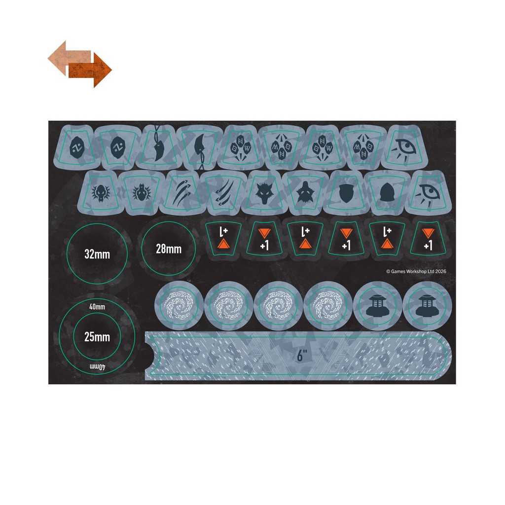 Dans la boîte, vous trouverez également une planche de 34 pions double face des Scouts Space Wolves, afin de garder facilement un œil sur votre équipement et les effets en cours dans le feu de la bataille.