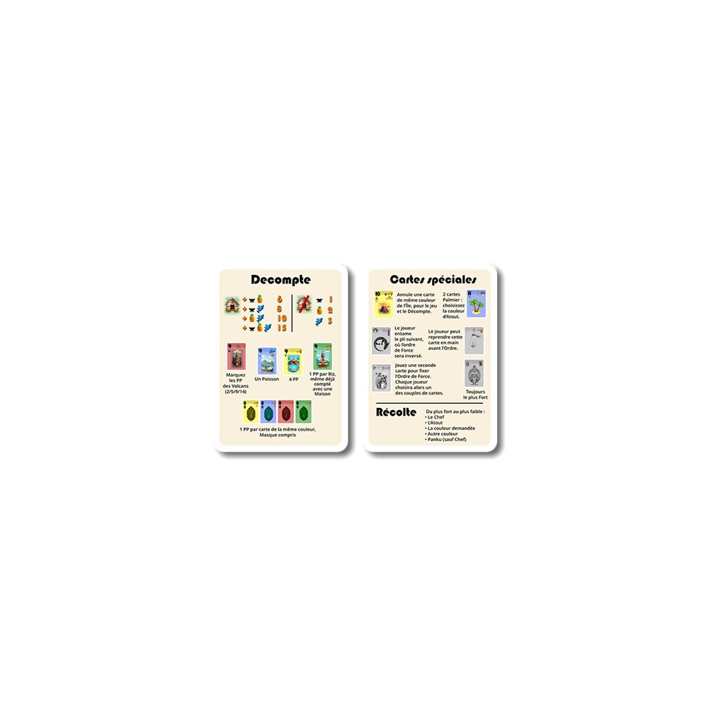 Alors que faire ? Privilégier les cartes fortes, qui gagneront des plis dans la manche suivante, ou les cartes faibles, riz, ananas, poissons et maisons, dont la quantité et les combinaisons valent tout de suite des points?