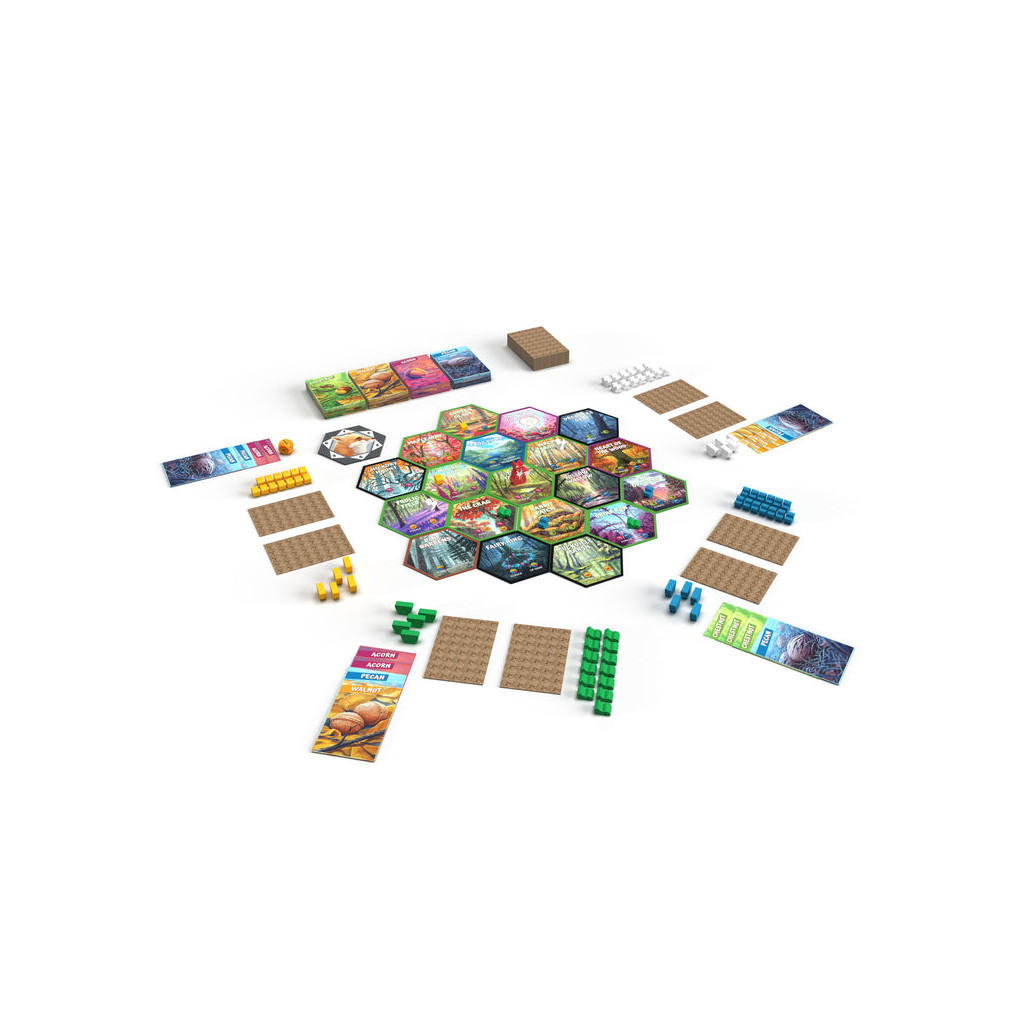 Quand trois écureuils se regroupent, ils forment un nid, et la partie se termine lorsqu’un joueur place son quatrième nid.