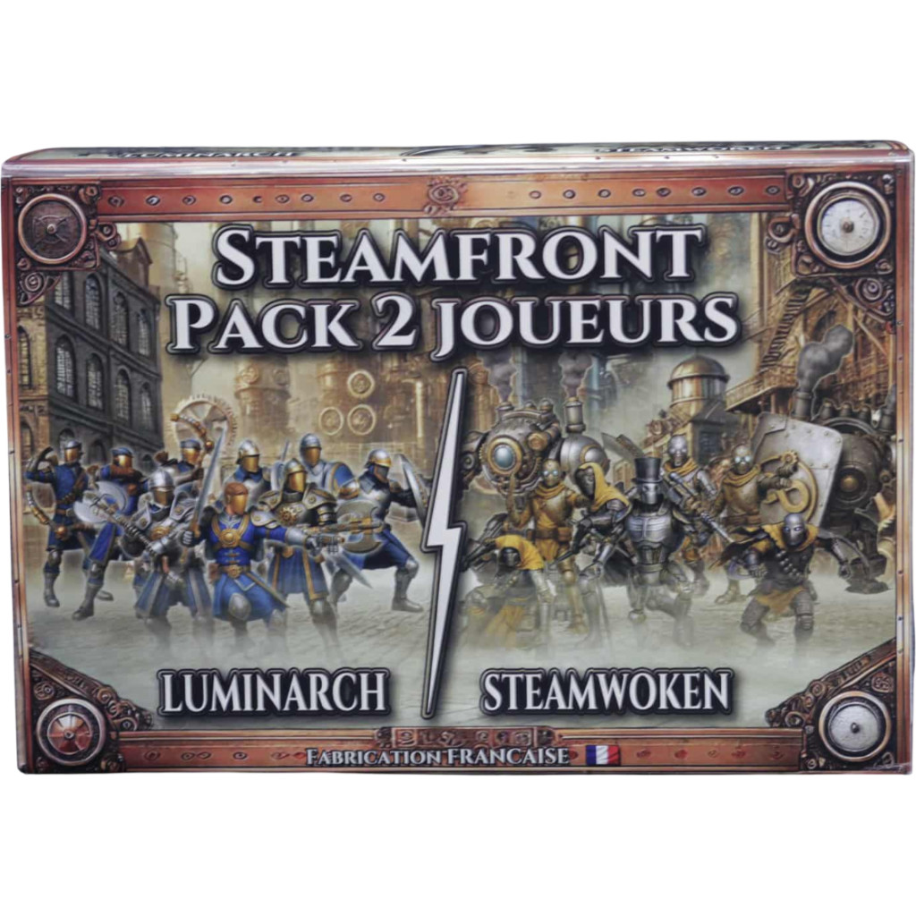 Plongez directement dans l’univers de Steamfront avec le Starter Pack 2 Joueurs : la boîte complète pour vivre vos premières batailles à Caldrion en duel !