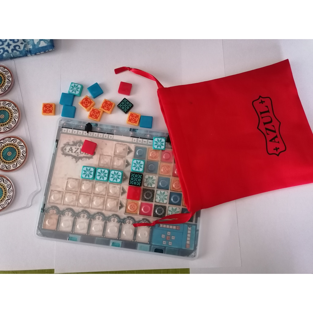 Sac pratique compatible avec le mini-jeu Azul. Le grand sac (inclus) peut contenir tous les éléments du jeu, mais il se ferme uniquement par un bouton-pression. Un sac plus petit est donc désormais disponible pour les tuiles, vous permettant de les ranger en toute sécurité et d'en piocher de nouvelles en cours de partie. Disponible en plusieurs couleurs avec un logo assorti.