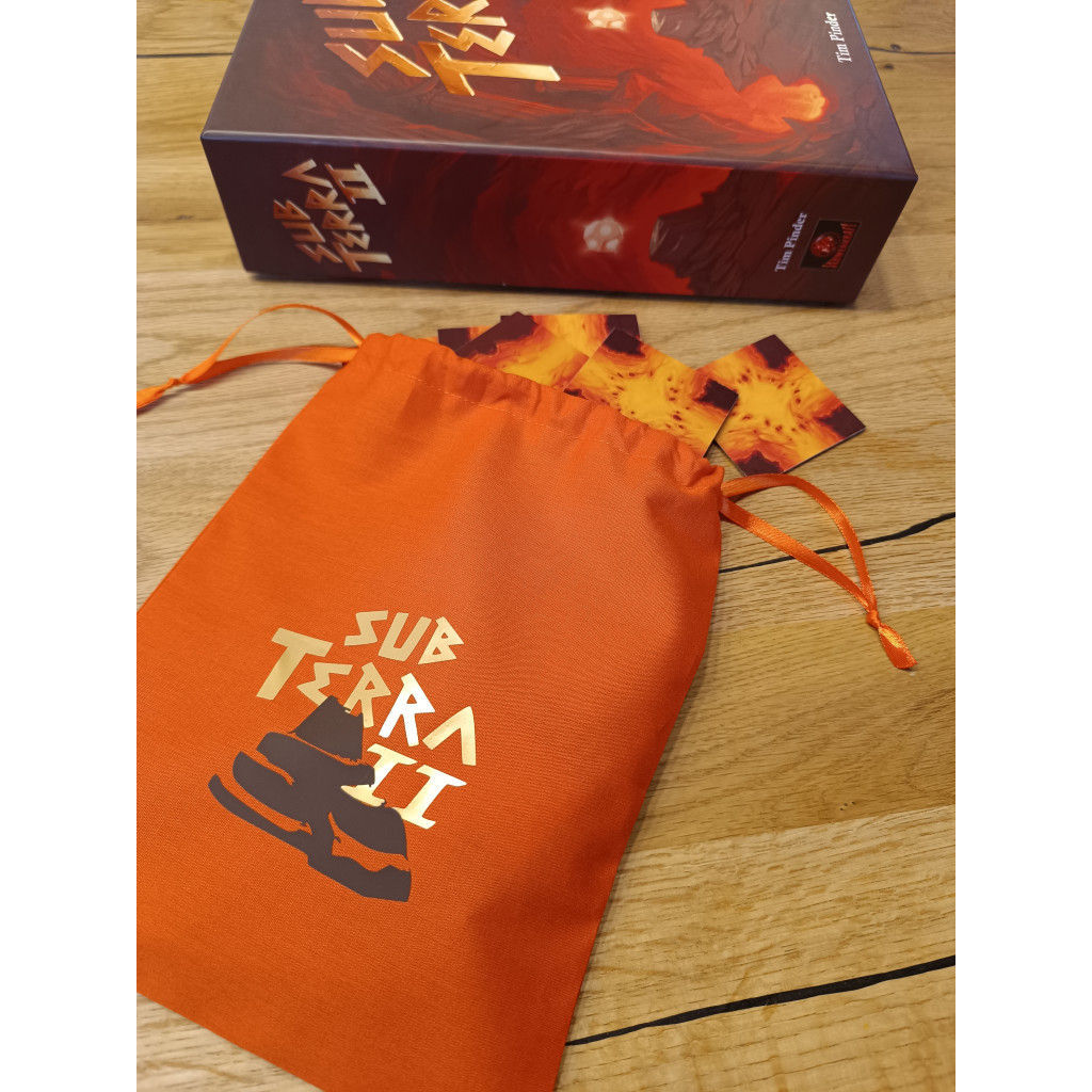 Grand sac pour le jeu de société Sub Terra II, avec logo assorti. Remplace le sac d'origine, trop petit. Facilite le mélange et le tirage des tuiles, pour un rendu esthétique et une présentation élégante sur la table ! Dimensions du sac : environ 22 x 18 cm Ceci n'est pas un produit officiel.