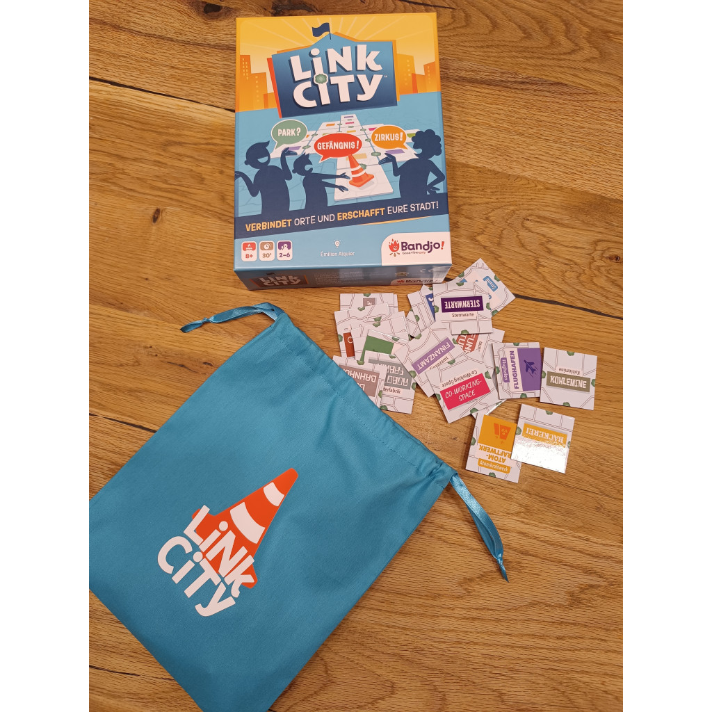 Sac fantastique pour le jeu coopératif Link City, d'un turquoise éclatant avec logo assorti. Plus besoin de mélanger les tuiles imprimées recto verso (!!!) sur la table : il suffit de les sortir du sac. Rangement pratique, installation rapide et présentation visuelle impeccable, tout en un. Un accessoire indispensable pour tous les fans de Link City !