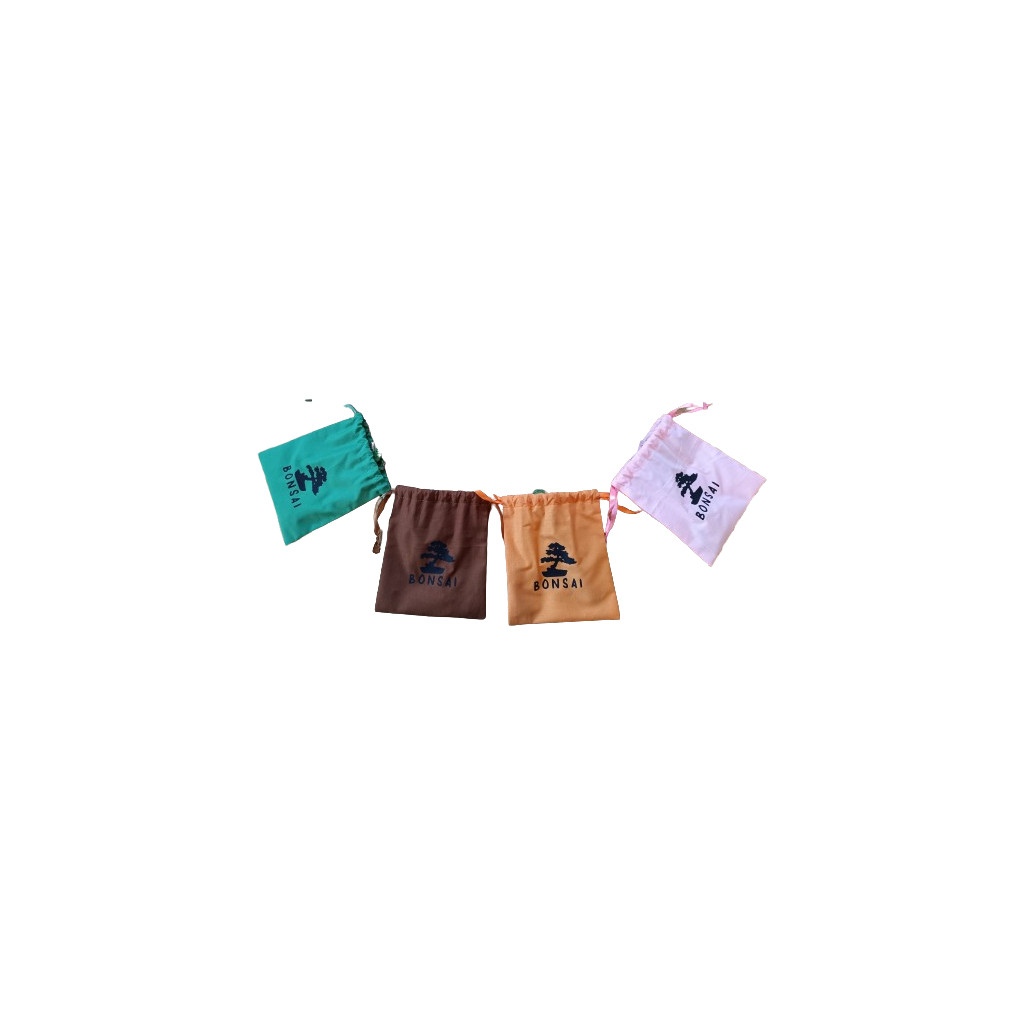 Ensemble de 4 sachets pour le jeu Bonsaï, aux couleurs orange, rose, vert et marron, avec logo assorti. Les tuiles se rangent facilement et sont rapidement accessibles pendant la partie. Installation rapide, rangement esthétique et présentation visuelle réussie !