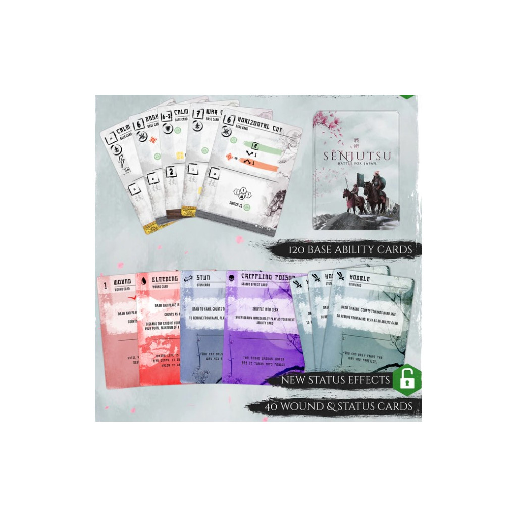 La boîte de base comprend des dizaines de cartes de capacité différentes pour façonner le style de combat du samouraï de votre choix. Il existe des milliers de combinaisons de deck possibles.