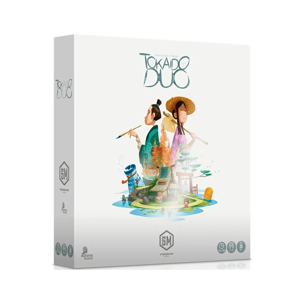 Tokaido Duo est la version pour deux joueurs du célèbre jeu Tokaido. Incarnez trois voyageurs, sur l'île japonaise de Shikoku et marquez le plus de points et optimisant leurs déplacements. Un jeu d'Antoine Bauza, illustré par Naiade.