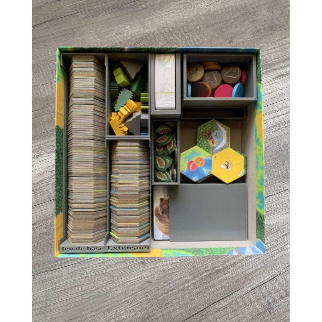 Insert en impression 3D compatible avec Cascadia et son extension Paysages. Upgradez votre jeu de société. Gagnez du temps de mise en place et de rangement.