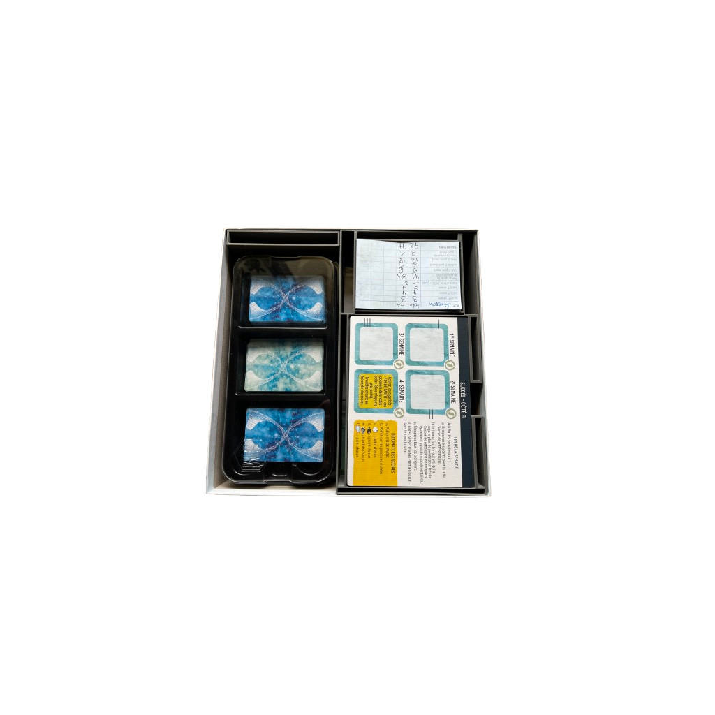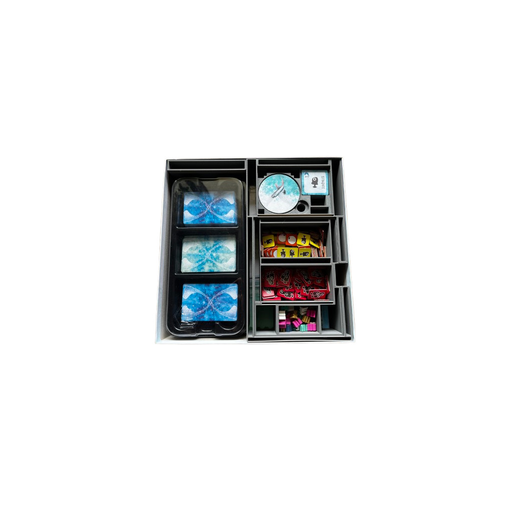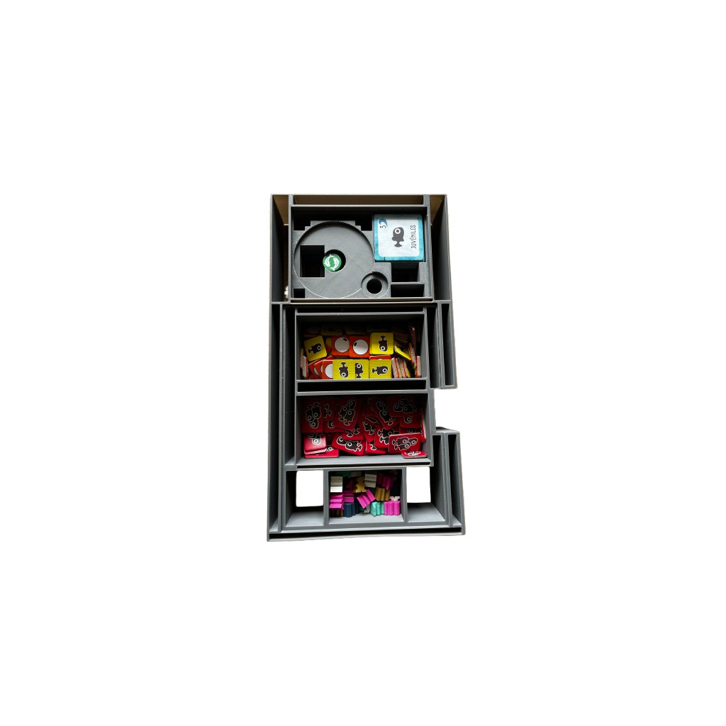 Composé de 2 parties, il conserve le thermoformage d’origine pour les cartes. La plus grande partie propose de nombreuses cachettes pour les pions du jeu.