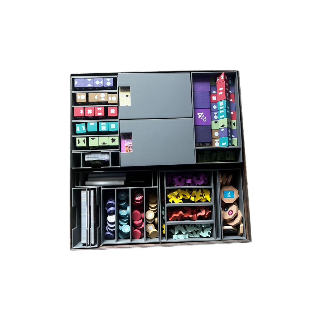 Cet insert en impression 3D adapté pour le jeu Fox experiment » deluxe wooden edition et extension se glisse dans la boite de base.