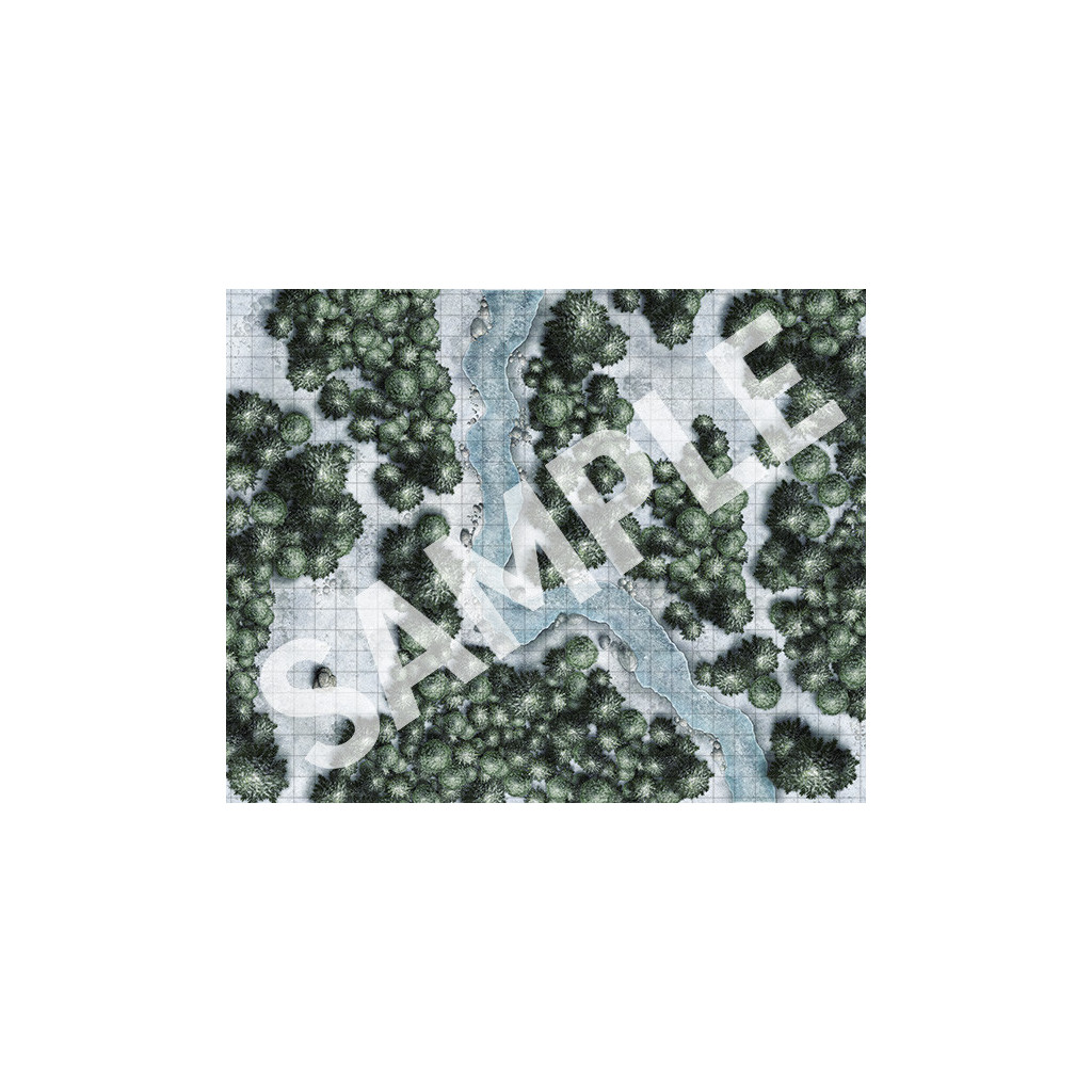 Un côté de cette carte double-face représente une forêt profonde bloquée dans l'hiver, avec un ruisseau gelé qui serpente à travers les bois. L'autre côté montre une autre partie de la même forêt accueillant le dégel printanier. Déployez cette carte sur votre table pour des combats rudes et hivernaux !