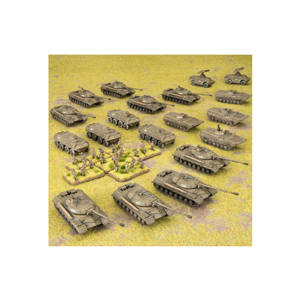 Plongez directement dans la guerre froide avec ce Starter Force soviétique World War III: Checkpoint Charlie. Ce Starter Force contient tout ce dont vous avez besoin pour commencer à collectionner et à jouer avec une force soviétique dans WWIII: Checkpoint Charlie. Déployez une armée dès la sortie de la boîte avec le T-10M, un successeur plus grand, plus performant et plus puissant de l'IS-3. Renforcez vos T-10M avec une sélection de véhicules de soutien ainsi que de l'infanterie motorisée avec des transports BMP-1.