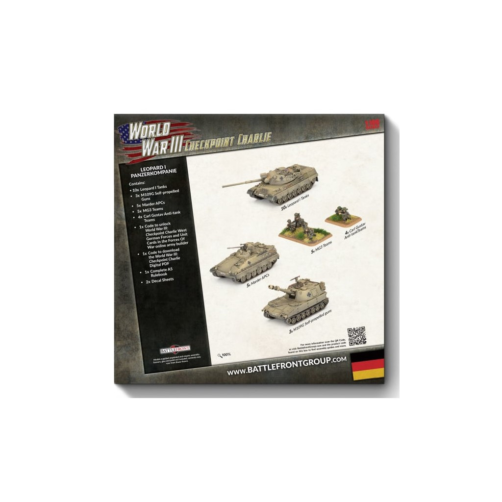 Pour vous permettre de démarrer votre expérience World War III: Checkpoint Charlie, ce starter comprendra également des codes pour débloquer les listes ouest-allemandes dans le Forces Army Builder, ainsi qu'une version PDF numérique du livre complet World War III: Checkpoint Charlie !