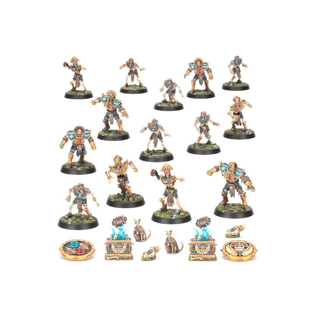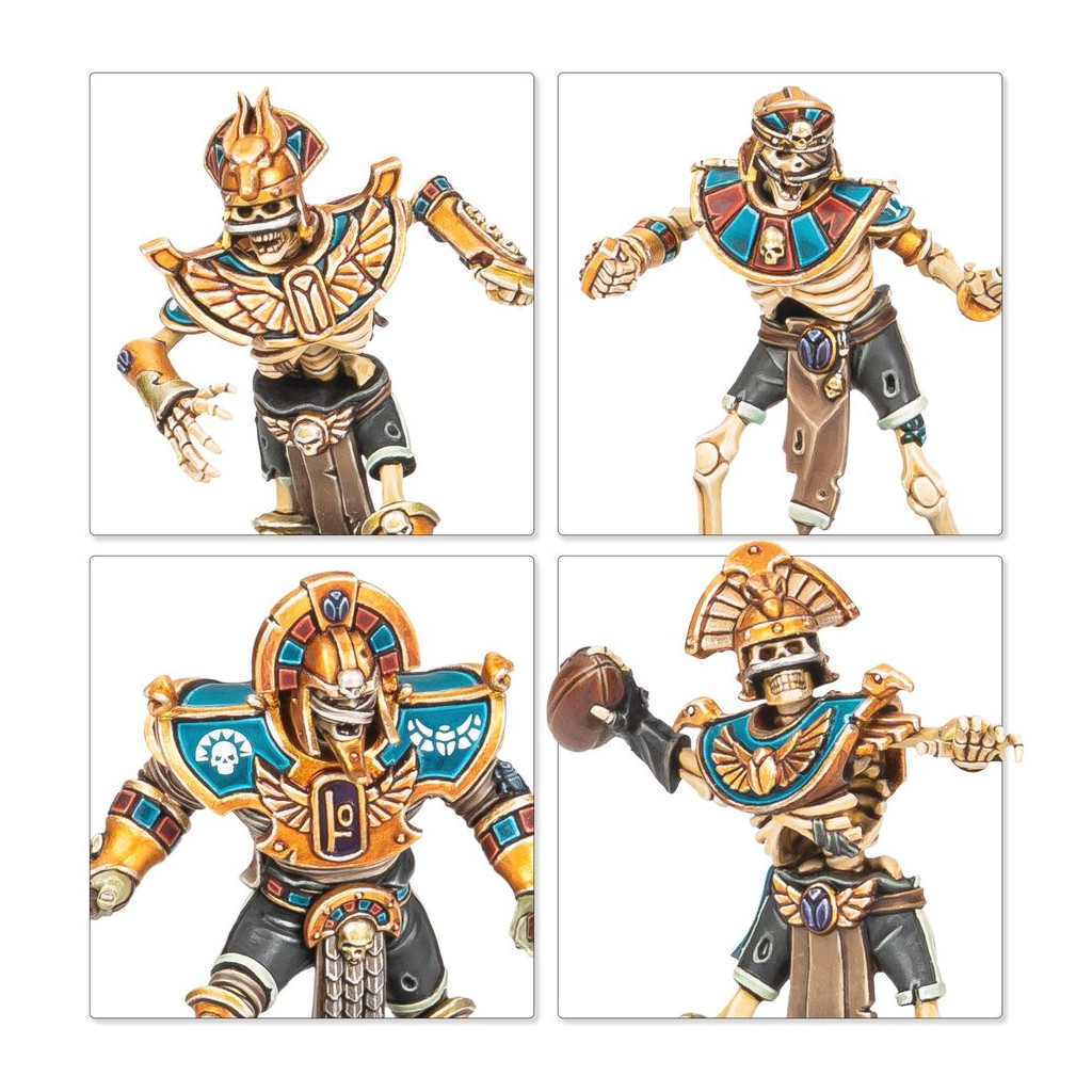 Ce kit plastique permet d'assembler une équipe de Rois des Tombes utilisable dans les matchs de Blood Bowl. Les Trois-quarts forment l'ossature – littéralement – de l'équipe, tandis que les Blitzers tirent profit de leur vitesse supérieure pour charger là où c'est nécessaire. Les Gardiens des Tombes sont des cogneurs brutaux, et les Lanceurs sont indispensables pour mettre la main sur le ballon.